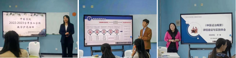 于鹰老师就《中医证治概要》的课程概述、设计教学实施及创新成果与体会做了经验分享。《中医证治概要》以学、练、讲、化、评为教学策略充分利用信息技术等教学资源落实内生式与外引式结合开发的教学设计坚持思政元素与专业知识融合的教学设计原则实施六步教学和多元化考核课程设计以一心四本为创新特色坚持师生同向同行、共同成长构建师生成长共同体以达到厚德精术的教学目的。