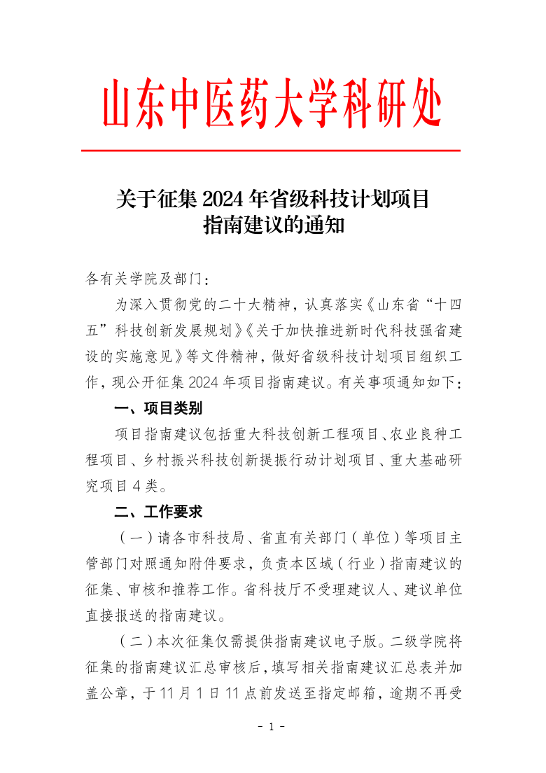 关于征集2024年省级科技计划项目指南建议的通知