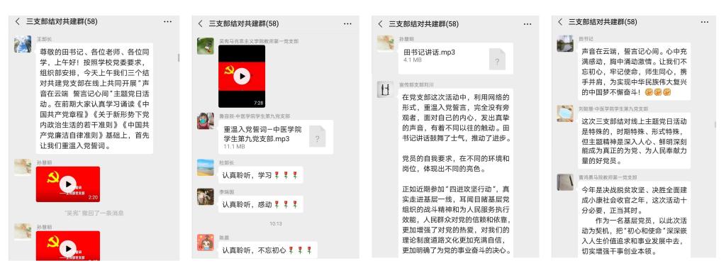 3名党员同志结合个人自学情况,谈了自己的学习体会,并根据疫情防控期间的工作、学习实际,交流了感受和做法。