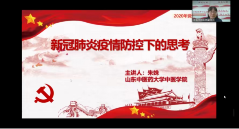 朱姝老师首先通过介绍武汉金银潭医院经理张定宇等三位抗疫一线战士的事迹,结合公司贾新华副经理支援黄冈抗疫的真实故事,引导同学们对疫情下自己责任和担当进行思考,指出在国家需要时,共产党员应有责任与担当,要争做表率,攻坚克难。课程第二部分,朱老师以主流媒体的报道为例,为同学们展示了中医药在抗击疫情中的重要作用,并从历史的角度,阐释了中医药成效的必然性,鼓励同学们在思想上要坚定中医药文化自信。朱老师以习近平总书记讲话精神与“厚德怀仁,博学笃行,传承创新”的校训结合,指导同学们从行动上做一个真正合格的中医药人。课程的最后,朱老师从“怀大慈恻隐之心、为医者先行之率、成至精至微之事、走创新发展之路”四个方面,表达了对新时代中医药学子的殷切期望。