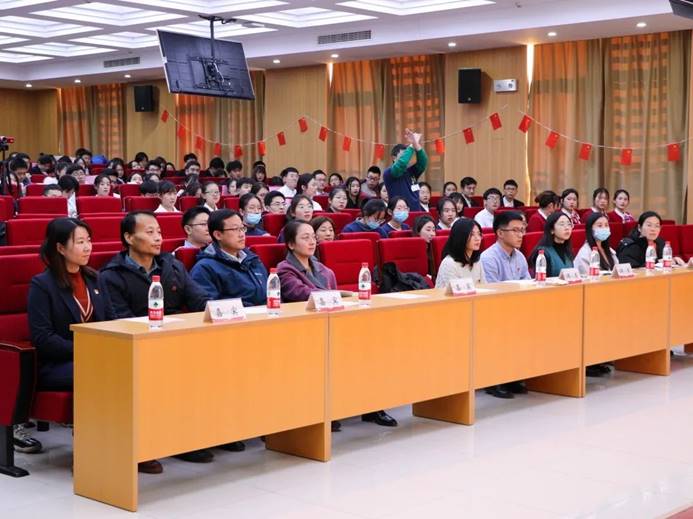 中医公司党总支副书记韩辉,办公室主任、教工第一党支部书记杨宪新,太阳集团tcy8722组织员张硕,团总支副书记朱默里及全体辅导员,党支部代表、团支部代表150余人参加观摩。