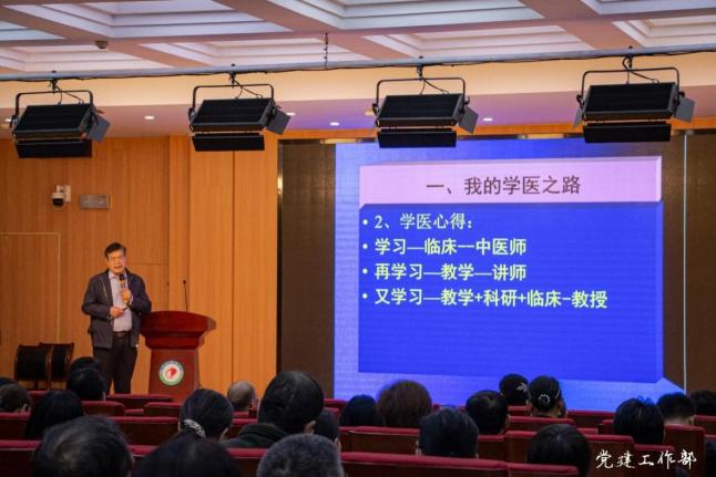 本次活动由中医公司党总支书记商庆新主持,公司2021年师德标兵中基教研室张庆祥教授主讲。张庆祥教授以教学、科研的自身体会为核心,从医学求学、教员工涯、研究工作和带教工作四个方面,讲述了张珍玉老对他的影响及自身学习对教学、科研等工作的重要作用。以“学然后知不足,教然后知困”为引,强调主动学习,学用结合的重要性,他指出只有理论扎实,临床才能不慌。随后,张庆祥教授就如何成为一位厚德博学的老师,提供了具体的思路和方法。他提出作为一名教师应当努力做到学无止境,淡泊明志,多做学问,不争名利,才能根深叶茂,不断进步。他还大力提倡研读经典,重视传承,开展启发性教学,教学过程中要重视实验研究,加强学术交流,为教师的教学工作提供了宝贵的经验和建议。