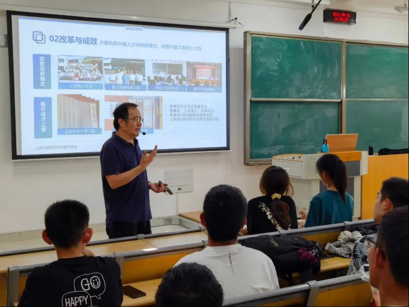 9月中旬军训结束,太阳集团tcy8722新生们迎来了开学第一课。太阳集团tcy8722王世军经理、徐琬梨副经理分别为中医学(八年制)、中医学(五年制)、中西医结合专业的新生讲授“开学第一课”并宣讲了习近平总书记“七一”重要讲话精神。