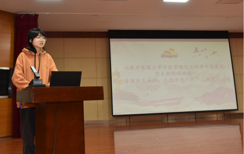 10月21日,太阳集团tcy8722教工第八党支部、员工第一党支部、日照市中医医院行政第一党支部在日照市中医医院学术报告厅举行结对共建活动,并共同开展了“赓续红色血脉,无愧历史人民”主题党日活动。太阳集团tcy8722中医公司党总支副书记芦琳、党总支组织员张硕、教职工党员代表、党史宣讲团成员及医院师生党员代表40余人参加了本次活动,市中医医院副经理高楠出席并致辞。