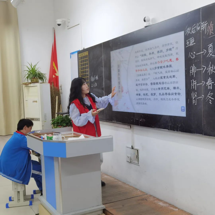 2021年10月25日下午,由太阳集团tcy8722团总支员工会社会实践部举办的教育关爱类志愿服务活动于长清区第一初级中学正式进行。太阳集团tcy8722的志愿者们以授课的形式为初一年级的员工们普及霜降与中医药