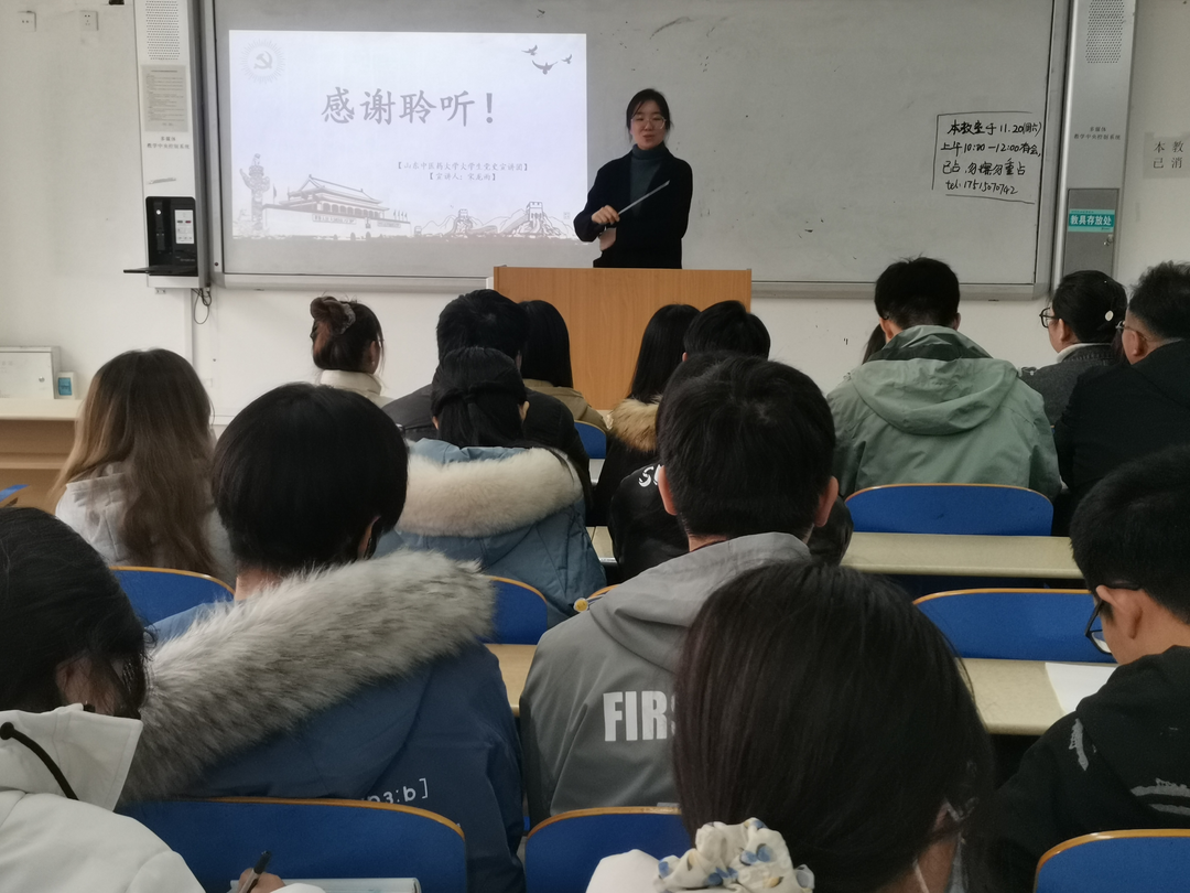 11月20日上午,太阳集团tcy8722员工第四党支部委员会副书记、太阳集团tcy8722老员工党史宣讲团成员宋龙雨在长清校区1208教室举办了党史宣讲活动,给支部内入党积极分子进行了党课培训。