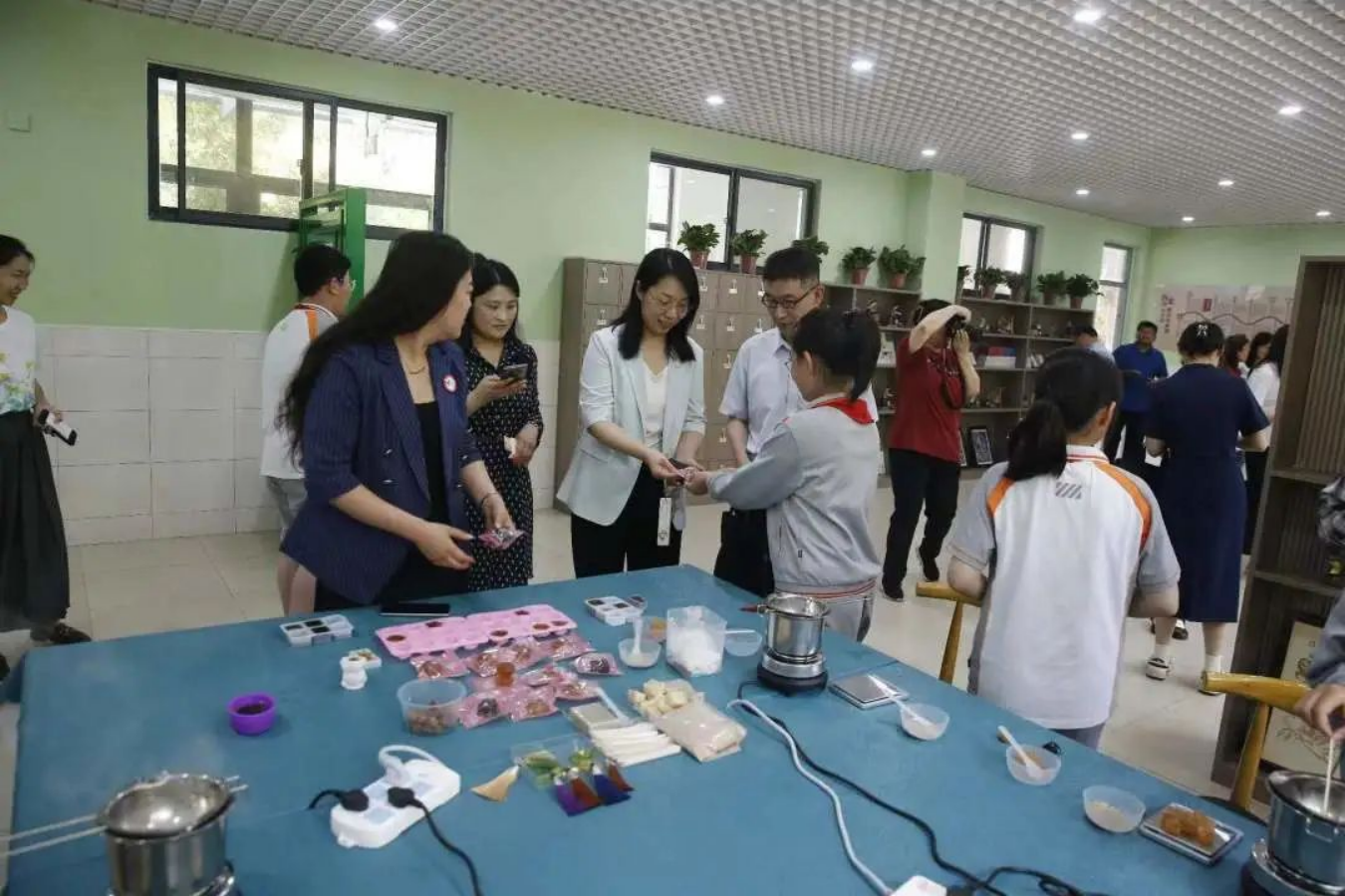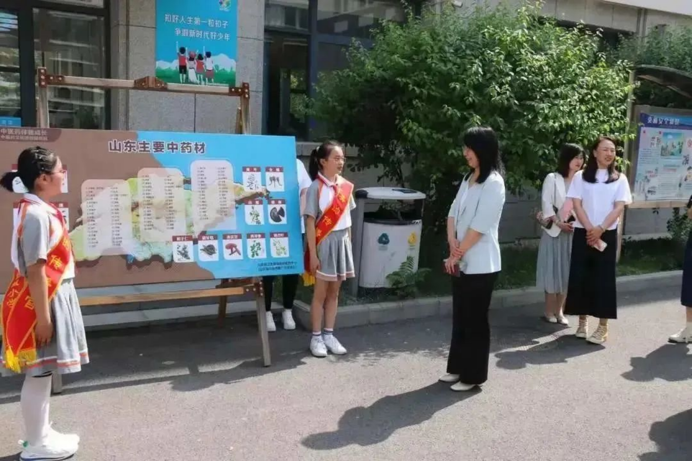 在户外中医药课程展示中,徐琬梨与小员工互动交流,带领同学们深度体验了“人在草木间,共品茶香美”“中药香囊与手工药皂”“华佗五禽戏”“臻美药圃”“字谜里的药草香”等课程,受到同学们的喜爱和欢迎。