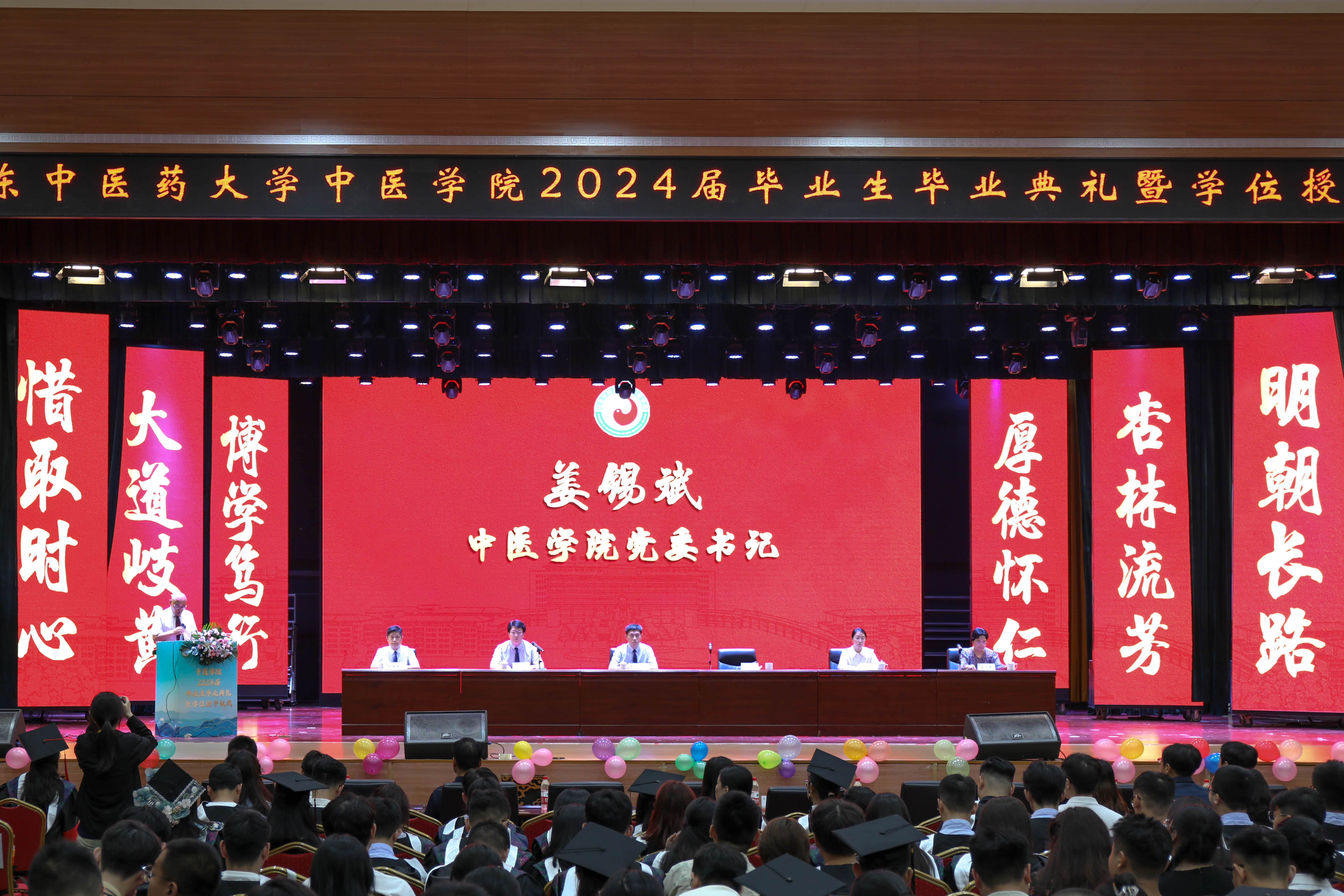 姜锡斌对毕业生同学在校期间取得的进步表示肯定,并为全体毕业生党员上了一堂接地气、促成长、鼓斗志、增信心的生动党课。他对毕业生寄语三点希望:一是坚守初心、固本培元,勇做胸怀家国的追梦者。山中医代代相传,每一代中医人都怀揣对党、对国家和对人民的深厚情感,忠诚奉献、接续奋斗,用智慧和汗水书写了属于山中医人的辉煌篇章。现在,接力棒交到了同学们这一代青年的手里,实现中华民族伟大复兴的中国梦责无旁贷地落到了同学们的肩上。作为代代相传中的一代,希望同学们永葆为国为民的初心使命,铭记中医人的使命和责任,厚植家国情怀,今后在各自的岗位上去服务国家、服务人民、服务社会。二是坚定信心、博取医源,力做勇于担当的实践者。希望同学们开好人生的四张处方,既:补气养血方,做坚定理想信念的人;疏肝通络方,做呼应时代需求的人;健脾补肾方,做具有终身学习能力的人;醒脑开窍方,做具有创新思维的人。三是淬炼匠心,传承精华,争做锐意进取的创新者。今后大家或奔赴临床一线救死扶伤,除患者之病痛,或投身科研一线,为高水平科技自立自强贡献智慧力量,抑或在更广阔的平台传播中医药声音,讲述中医药故事。无论身在何方,希望大家不求庙堂之高,只追求理想之远。冀以尘雾之微,补益山海;以萤烛之光,增辉日月。今天同学们每个人都是中医药事业的“星星之火”,明天,同学们也必将以无限的能量燃起中医药事业发展的熊熊烈火!