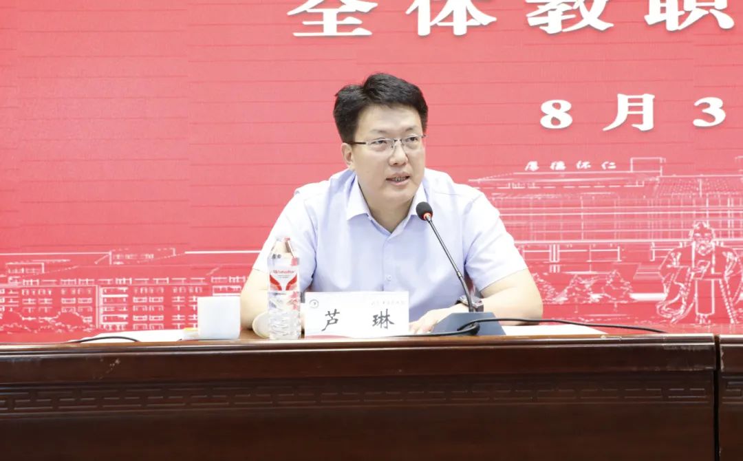 公司新一届党政领导班子成员、全体教职工参加会议。会议由中医公司党委书记芦琳主持。
