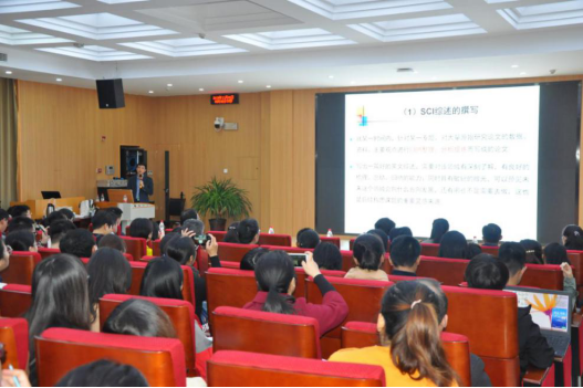 上午第一场由张峰副教授就“SCI论文撰写与发表的一点体会”展开讨论,分为SCI综述撰写、实验性论文撰写及论文投稿三部分内容,张峰副教授详细分析了SCI论文写作的每一部分的结构组成、语法时态及文献参考,并针对导致SCI写作中文献阅读选择、如何提高有效文献阅读率以及投稿期刊选择等进行了重点讲解,并建议多读高水平论文,为SCI论文写作提供思路,不断提高科研能力。