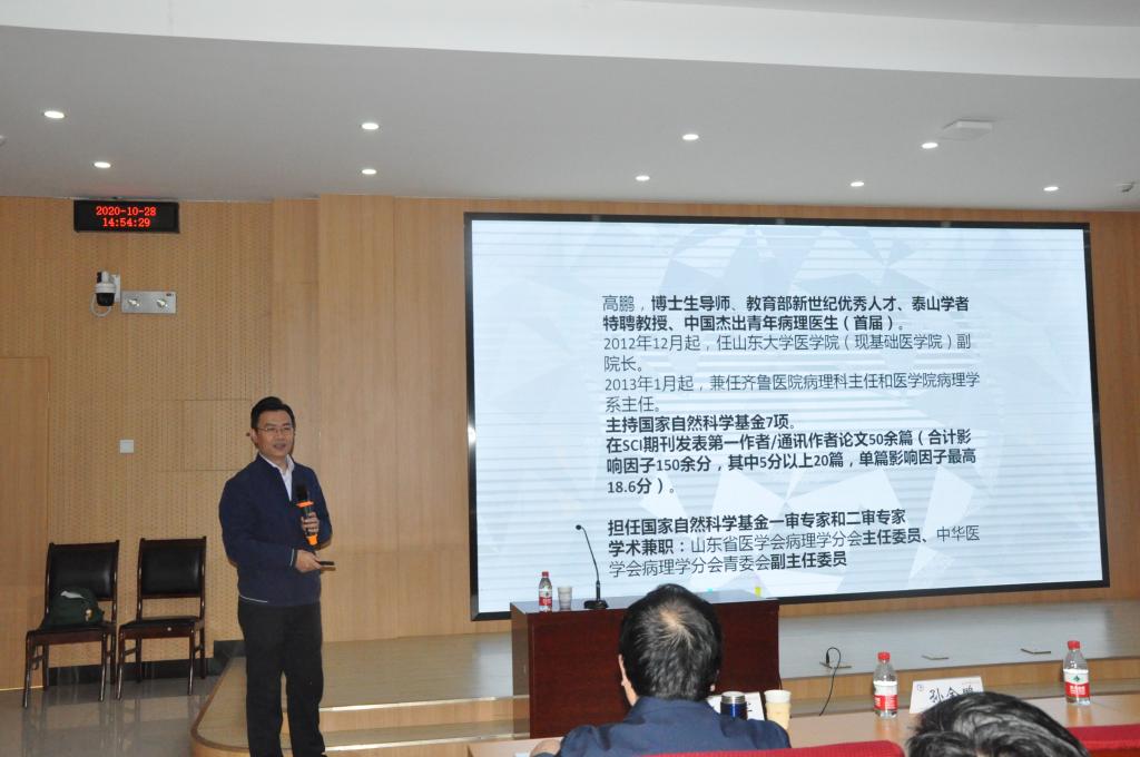 2020年10月28日下午14:00——15:40,在3号教学楼第1报告厅,公司开展了第三次2021年国家自然科学基金申报系列培训。山东大学基础医公司孙金鹏主讲“G蛋白偶联受体信号转导的多样性及药物发展”,高鹏教授分享“关于国家自然基金申报的几点体会”,公司经理王世军主持了本次会议。