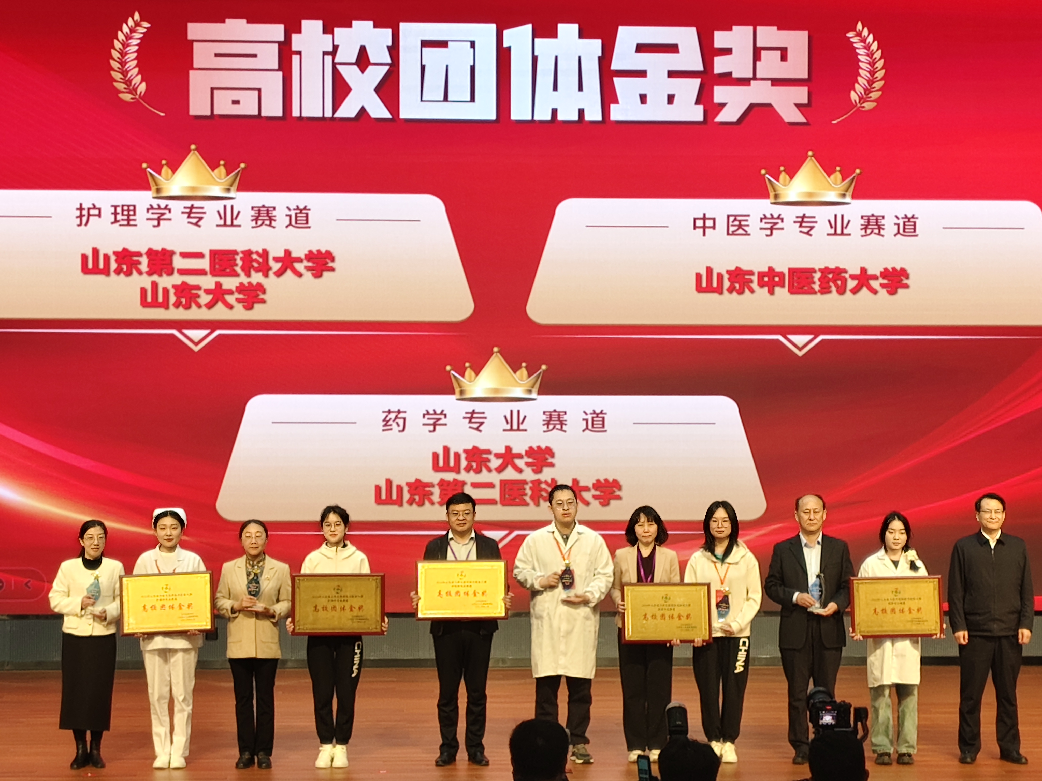 公司与针灸推拿公司组队参加中医学赛道的比赛,在此次山东省医学技能比赛中取得了优异成绩,公司中医学专业获得A赛道特等奖、B赛道特等奖以及高校团体金奖,A赛道张丁元同学在理论笔试、中医诊断技能、中医内科接诊以及针灸技能站连获4枚个人单项奖;A赛道毛学腾同学在方剂知识与运用、急救技能、针灸临床能力站连获3枚个人单项奖;A赛道王子雨同学在中药辨识与运用、中医外科操作站连获2项个人单项奖;B赛道田智涵同学在方剂知识与运用、急救技能站连获2枚个人单项奖。公司李毓秋老师斩获优秀指导教师团队奖。