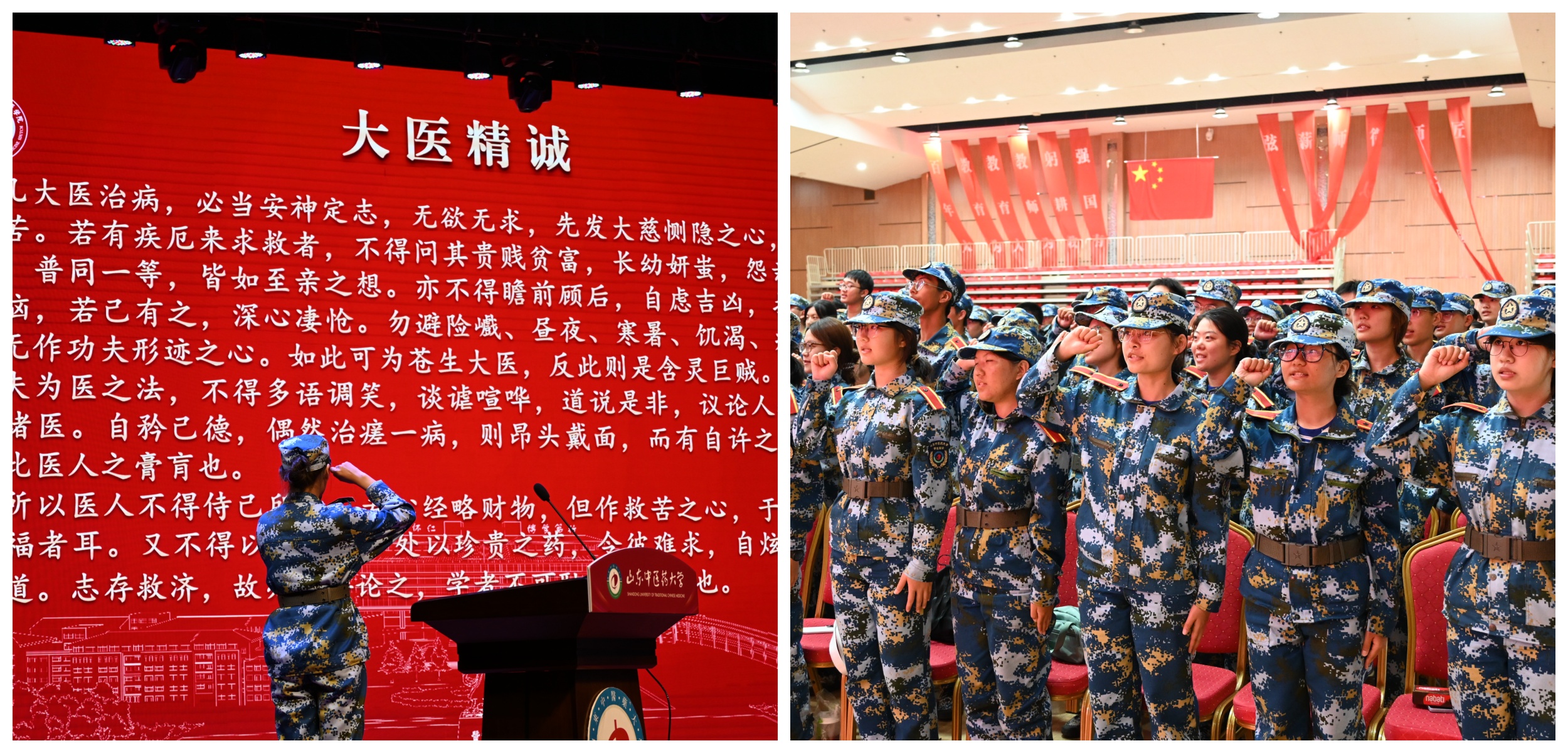 典礼最后,全体新生庄严宣誓,共同举起右拳齐声颂读医员工誓词。