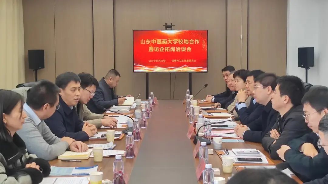 宋占帅对张玉龙一行表示热烈欢迎,并介绍了淄博地区医药卫生事业建设发展成绩和特色优势情况,希望能与公司加强合作交流,吸引高校优秀毕业生来淄就业,推进我市卫生健康系统人才队伍建设;深化校企合作,促进科技成果高质量转化和产业化发展;推动产业落地,携手共助中医药和大健康事业高端化、特色化发展。