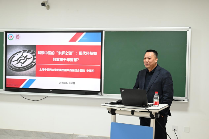 开班仪式结束后,教育部长江学者特聘教授、首届青年岐黄学者、上海中医药大学附属岳阳医公司党委副书记、副经理李福伦以“解锁中医的‘未解之谜’:现代科技如何重塑千年智慧”为题作专题学术报告。从临床实践与科研思维出发,深入剖析中西医协同诊疗的优势与路径,并针对同学们在学业规划、临床实践等方面存在的问题给予耐心细致的解答。