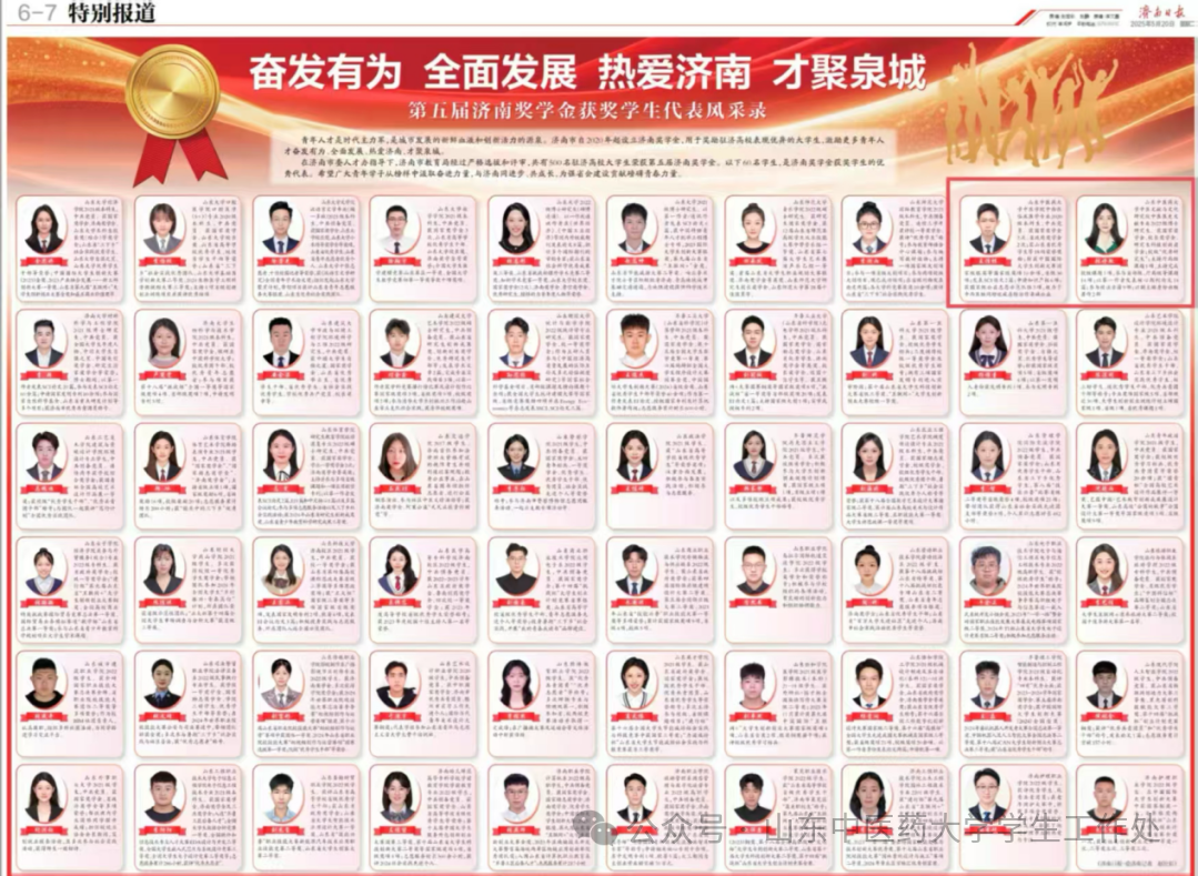 2025年5月20日,《济南日报》刊登《第五届济南奖学金获奖员工代表风采录》,公司中医文献与文化研究院2022级博士研究生张诗敏、太阳集团tcy8722中西医临床医学专业2020级本科生孟佳棋荣登榜单,展现了新时代中医药学子的优秀风采。