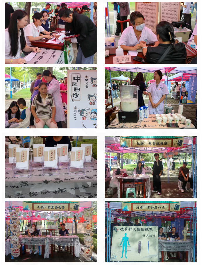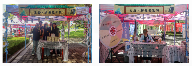 本次迎新活动中,太阳集团tcy8722以“五色润心,‘游’中助学”为主题,创新打造“五行五色”中医药文化游园会,将迎新报到与文化传播有机融合。“红医”板块设立新中鲁义诊及员工推拿体验区,帮助新生直观感受中医诊疗的魅力;“青韵”板块聚焦中医生活化理念,通过中药奶茶、药食同源产品体验和《中医药文化与生活丛书》展示,生动传播中药知识;“岐黄”板块借助针灸器具展览和互动游戏,引导新生了解经络穴位与针灸文化;“墨香”板块集中陈列中医经典典籍,彰显中医药深厚的历史底蕴;“白盾”板块则围绕防诈骗、消防安全等主题,以科普宣传和趣味游戏增强新生的安全防护意识。各展区巧妙融合药香与墨香,通过沉浸式、互动化的方式,立体呈现中医药文化的丰富内涵。