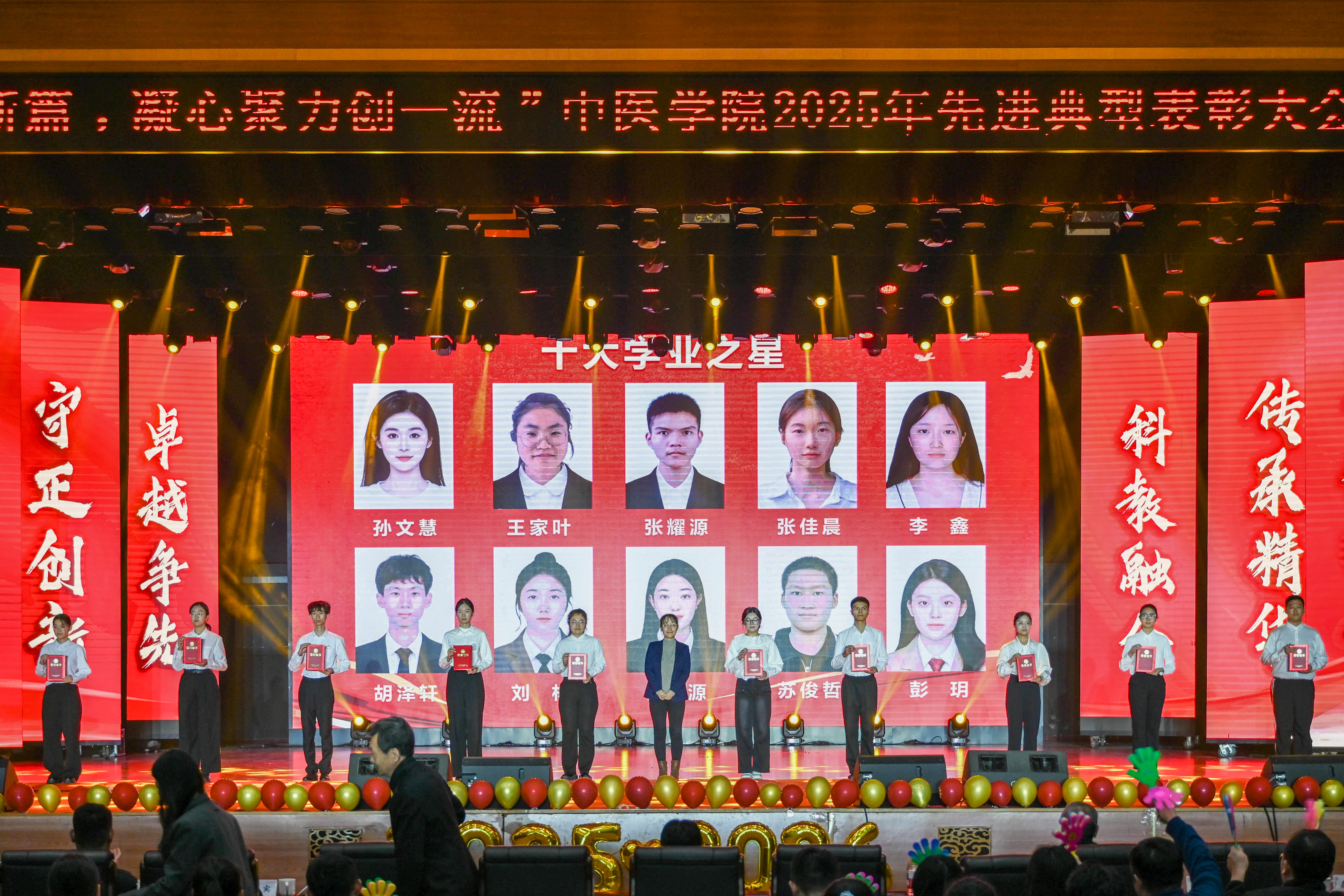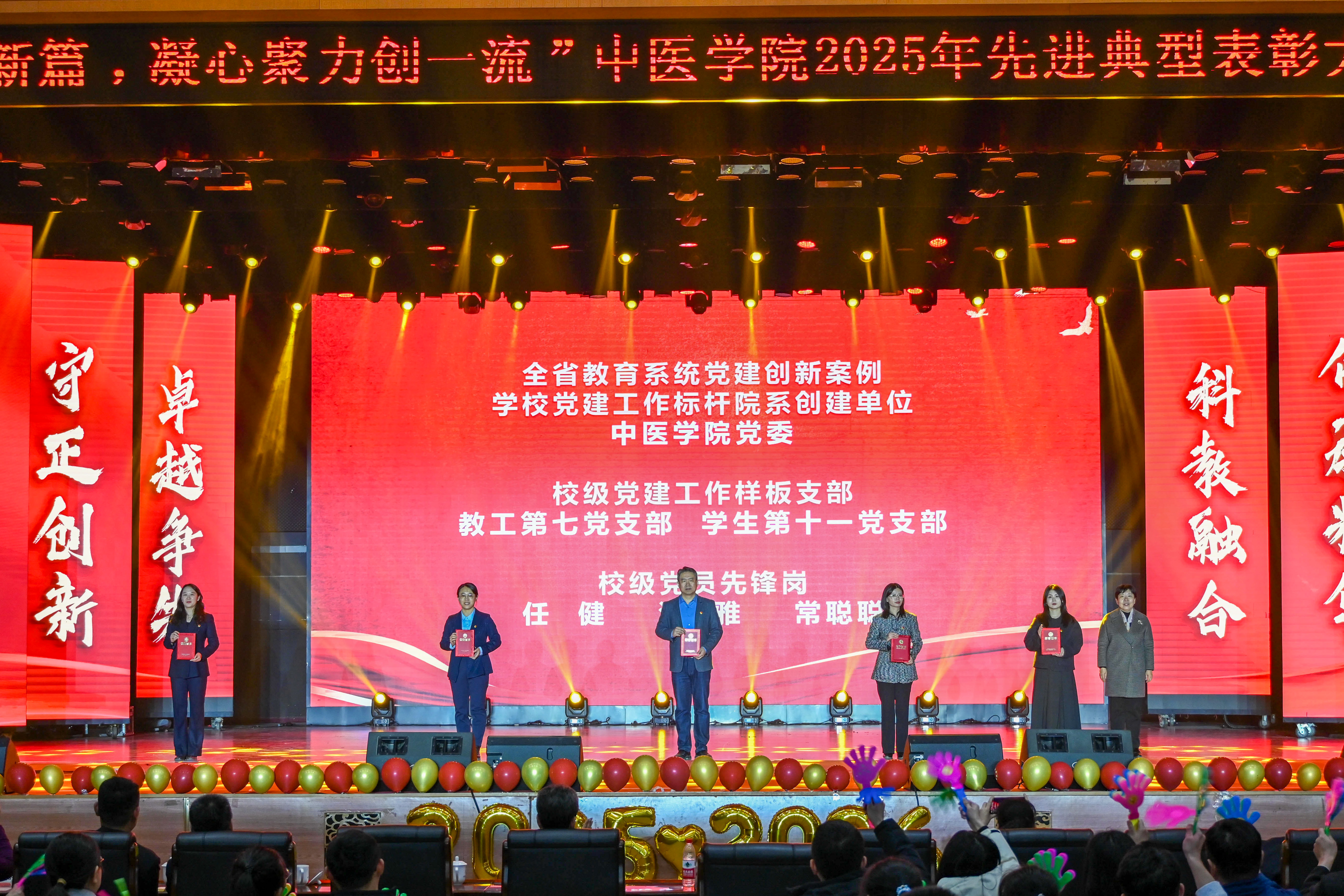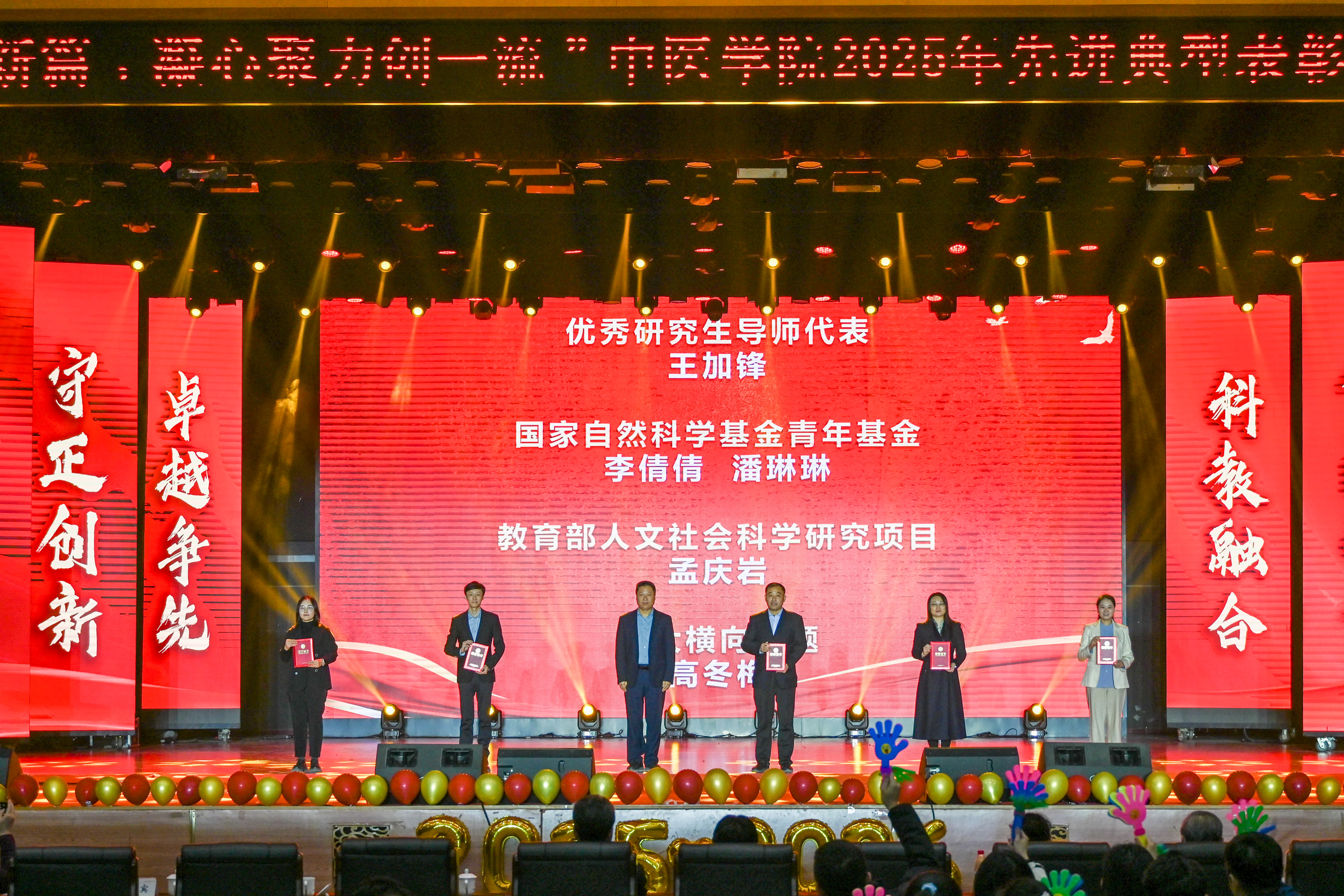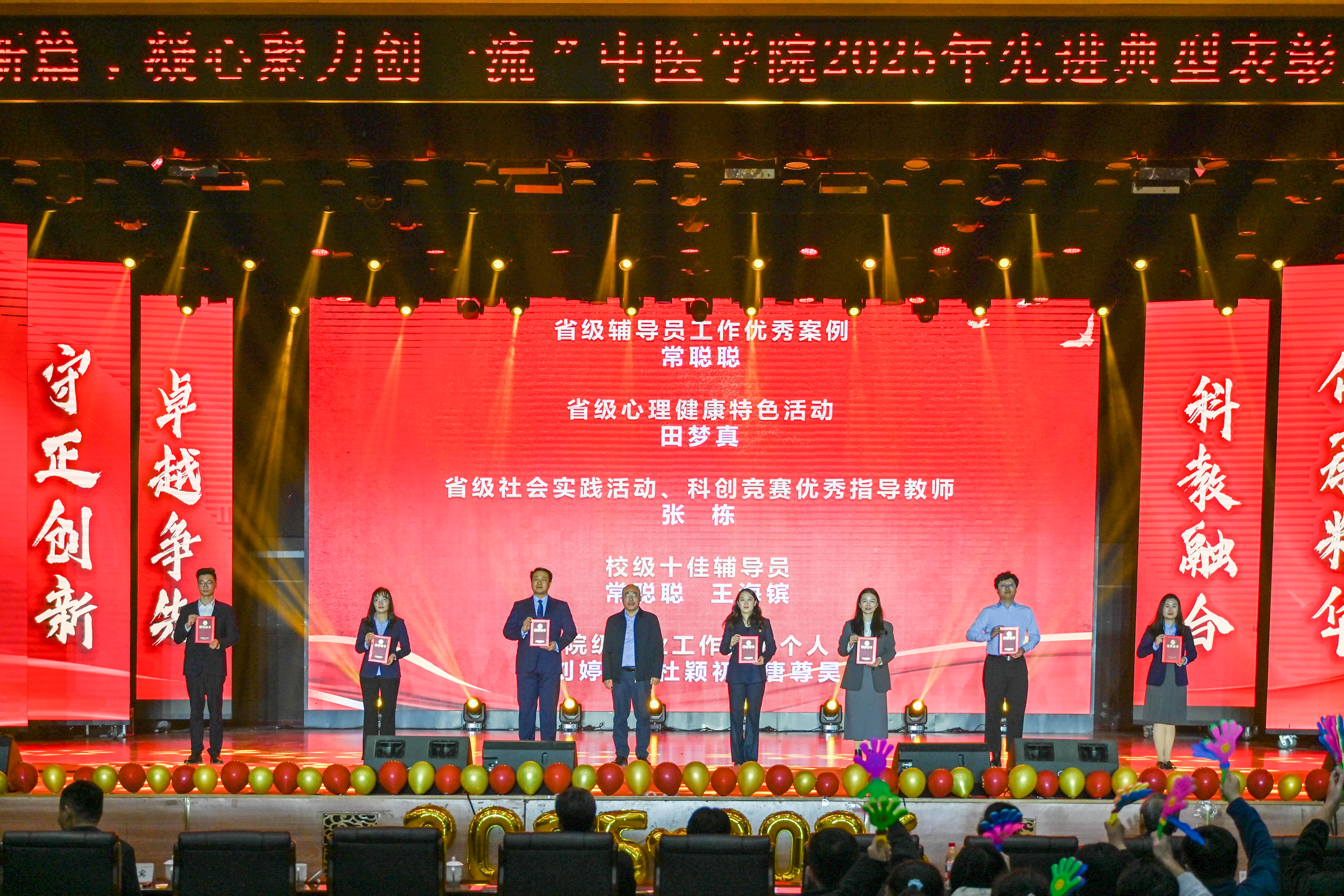 大会表彰了“党建领航奖”“教学贡献奖”“科技创新奖”“潜心育人奖”等荣誉称号获得者,以及“十佳先进班集体”“十大自强之星”“十大学业之星”“十大科研之星”等先进典型代表。