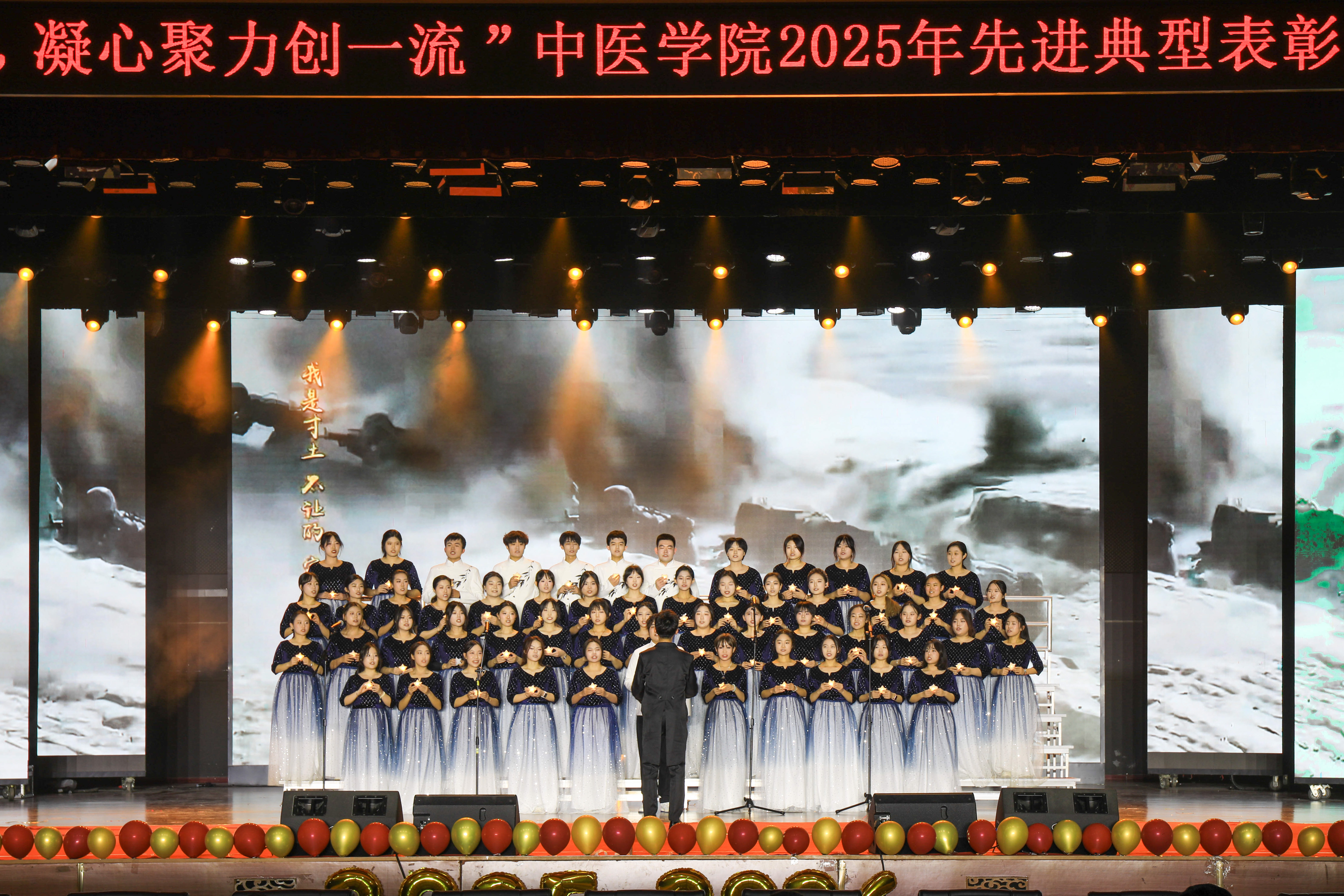 表彰大会由公司党委副书记、经理李霞主持。公司相关部门、单位负责人,学工办主任,太阳集团tcy8722师生代表、全体辅导员、2025级新生观看演出。