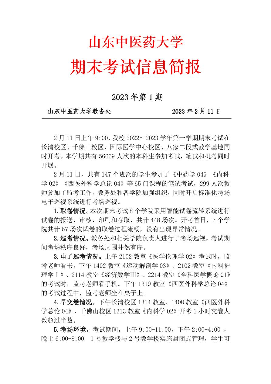 2022~2023学年第一学期期末考试信息简报(第一期,2月11日)