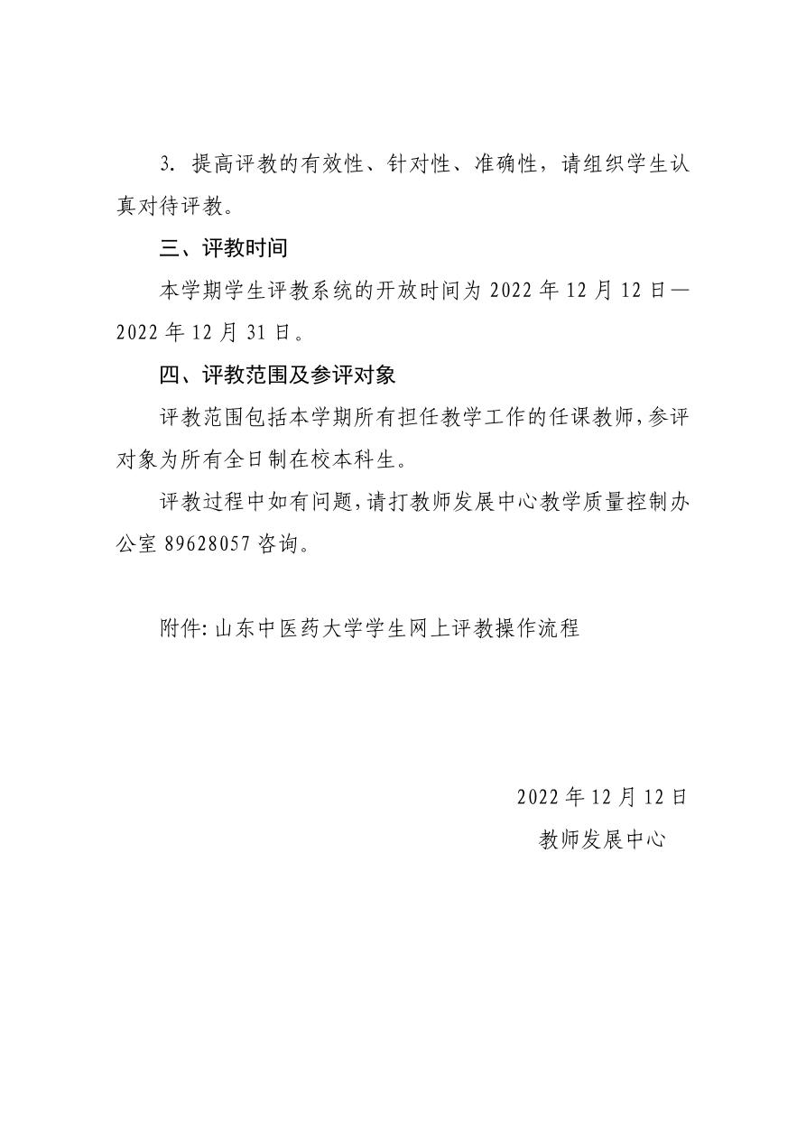 关于开展2022-2023学年第一学期员工网上评教工作的通知