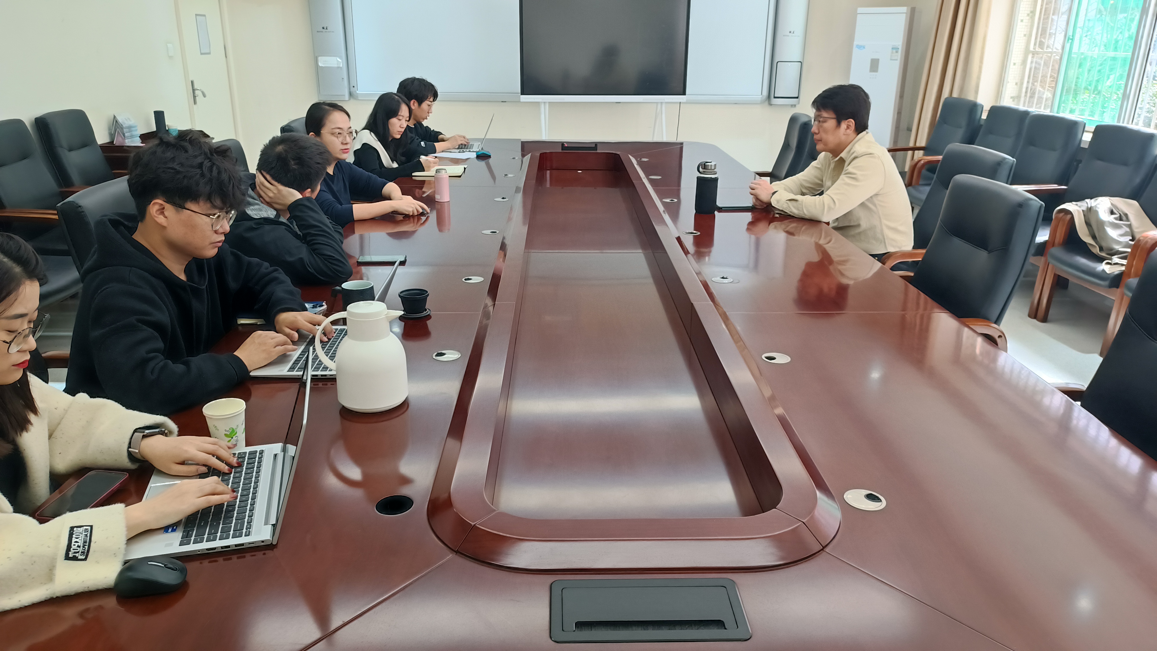 中医公司党总支副书记芦琳主持会议,千佛山校区全体辅导员参加会议。