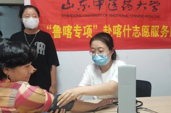 为加强援疆支教成效,促进中医药文化传播,发挥支教团队为群众办实事的更大作用,团队和公司其他支教队伍一同在所驻的疏勒县疏勒镇城东新区社区开展义诊活动。为社区居民提供基本健康查体、医疗保健咨询、血压测量、压耳豆及针灸按摩等中医药优势特色服务;对患有头痛、颈椎病、腰椎病、类风湿等病症的居民,现场进行了推拿按摩及康复手法治疗;普及高血压、糖尿病、脑卒中等常见中老年疾病的预防保健知识,传授了简易居家康复手法;针对现场不能解决的顽疾,提出科学合理的针对性诊疗意见。有效宣传了中医药优秀传统文化,增进了民族地区对中医药的了解,奠定了民族一家亲的深厚情感。