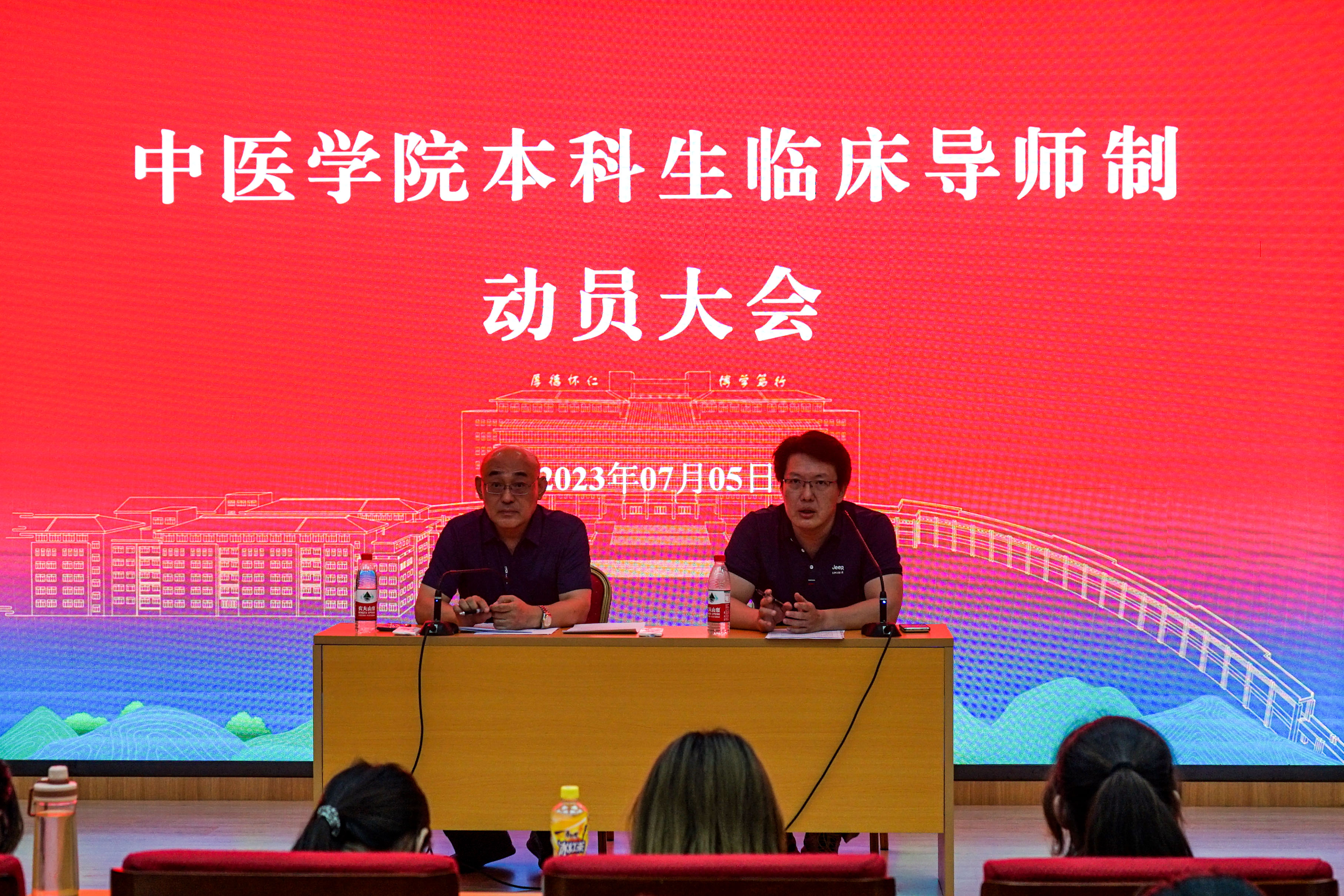 姜锡斌简要介绍了本科生临床导师制的意义,从学风建设、职业生涯规划、青蓝工程试点的成效、医员工资源分配现状四个方面,通过大量的典型案例阐释了本科生临床导师制实施的必要性。他指出,本科生临床导师制在理论教学的补充、师承关系的延展、临床意识的深入、人际交往能力的提升等方面对医员工有所裨益,希望同学们通过临床导师制将基础和临床、理论和实践有机结合,致力于成长为医德高尚、理论深厚、医术精湛的中医人才。