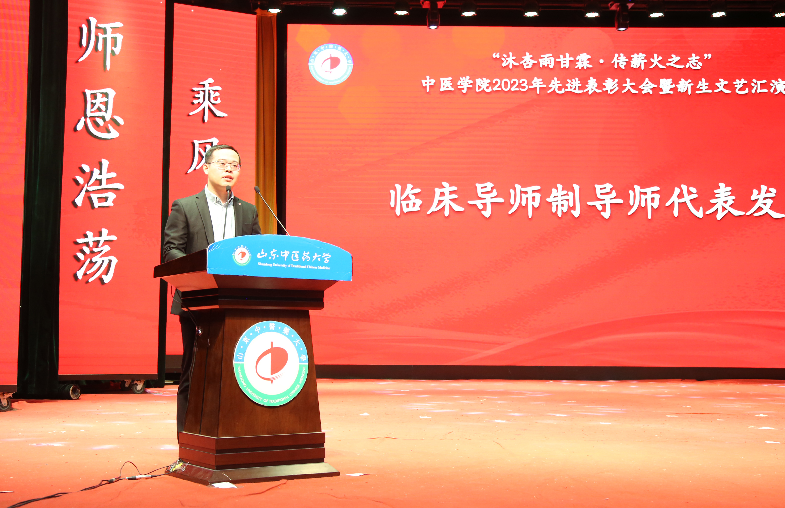 中医公司党委书记姜锡斌在致辞中回顾了公司的发展历程,总结了公司发展取得的成绩,并对未来中医人才的培养做出展望。重点阐释了“鲁源计划”和“本科生临床导师制”所取得的显著成效。他指出,公司在公司党委的坚强领导下,强化“三全育人”暨全环境立德树人工作机制,建立思政导师、学术导师和临床导师“三导师”制度,积极探索医员工培养新模式,于今年推出“鲁源计划”,创新性打造就业服务新路径,并在此基础上试行本科生临床导师制,搭建员工临床社会实践平台,反响热烈,效果显著。下一步,公司将持续提高精准化工作水平,建设一站式服务育人体系,以优异的成绩迎接公司第六次党代会胜利召开!