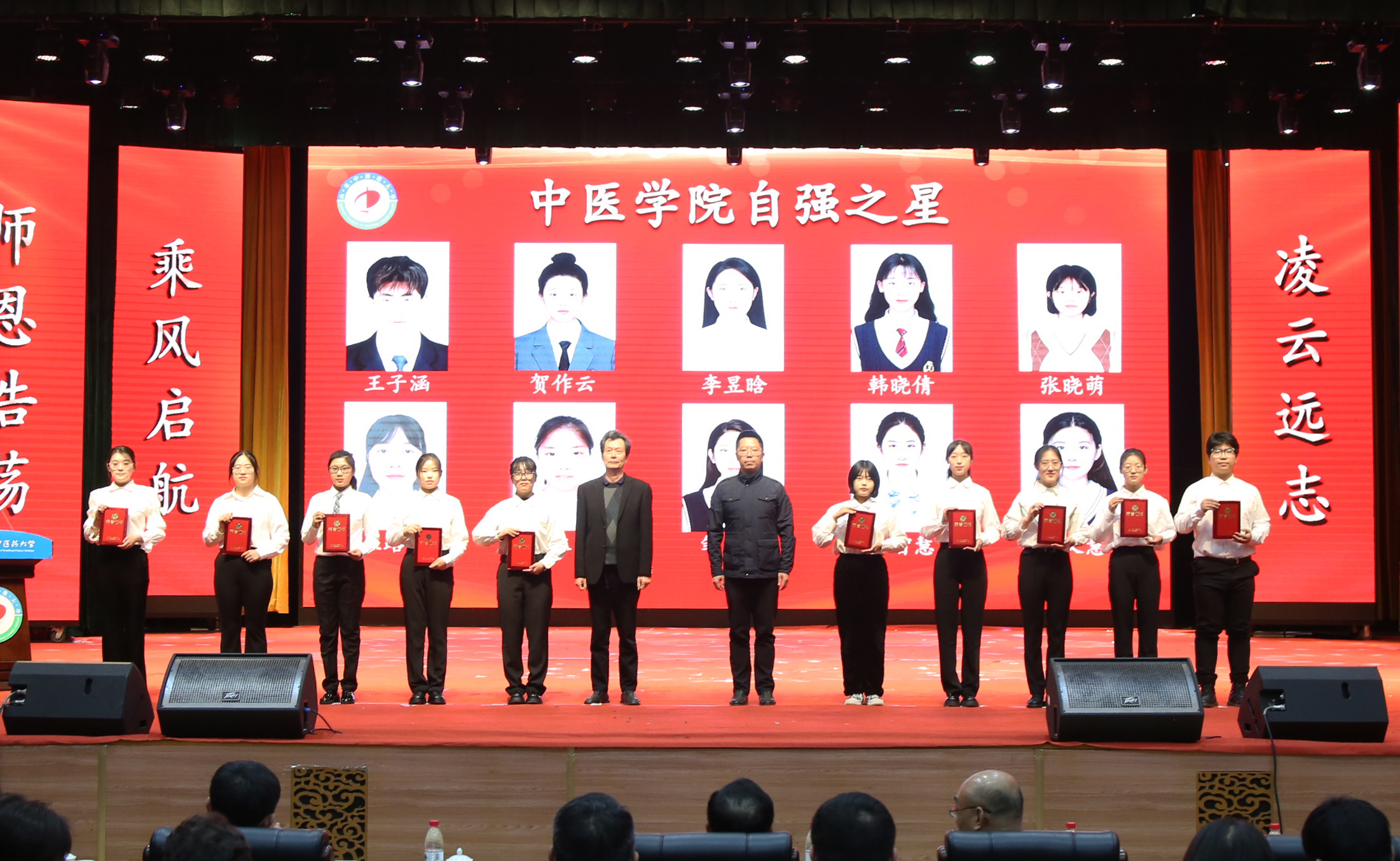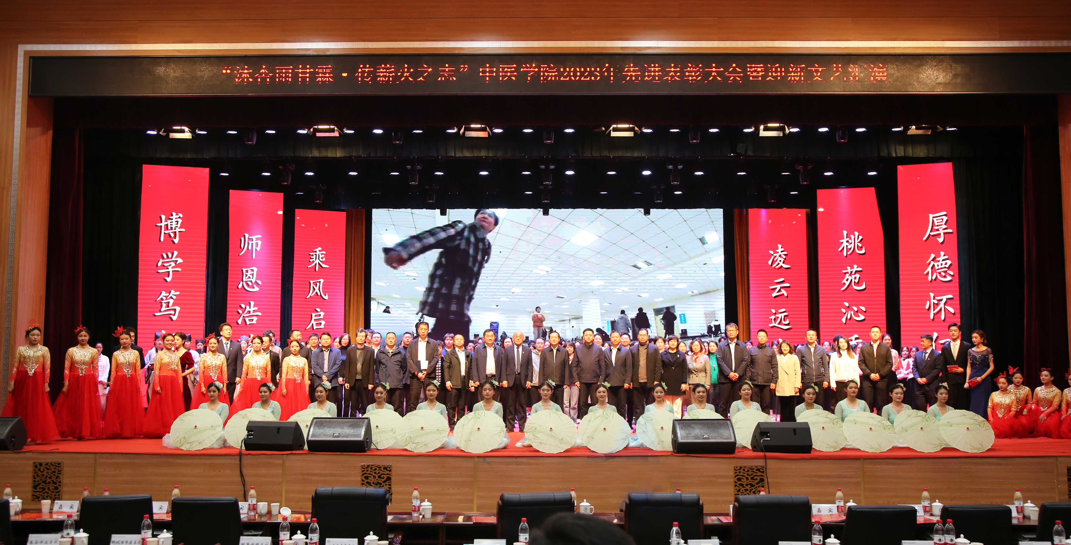 文艺汇演在舞蹈《美丽中国》中拉开帷幕,器乐合奏《灯火里的中国》抒发了对祖国的无限深情和美好祝福;朗诵《穿越时空的对话》讴歌了五千年中医文化的无穷魅力;歌曲《理想照耀青春》《燃烧》《神奇中医》以青春之名唱响信仰的力量;情景剧《小王的临导制日记》再现了员工与临床导师共论病例、共研方案、共面挑战的温情瞬间;模特走秀《绽放》等精彩的节目为观众呈现了丰盛的视听盛宴;舞蹈《雨涧春行图》《京韵》用灵动的舞姿展现了中医学子朝气蓬勃、青春激昂的精神风貌;演出在师生合唱《强国一代有我在》中完美谢幕。本次汇演节目涵盖了器乐合奏、歌曲、舞蹈、朗诵、情景剧等等多种节目类型,节目形式丰富、内容充实,反响热烈。