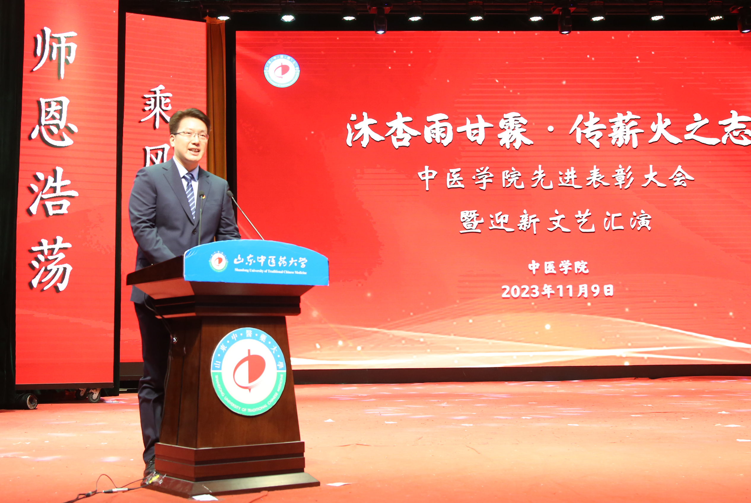 11月9日晚,太阳集团tcy8722“沐杏雨甘霖 传薪火之志”2023年先进表彰大会暨迎新文艺汇演在长清校区老员工活动中心举办。公司党委书记张立祥,副董事长张玉龙出席活动,和广大师生一起观看演出并为获奖员工颁奖。