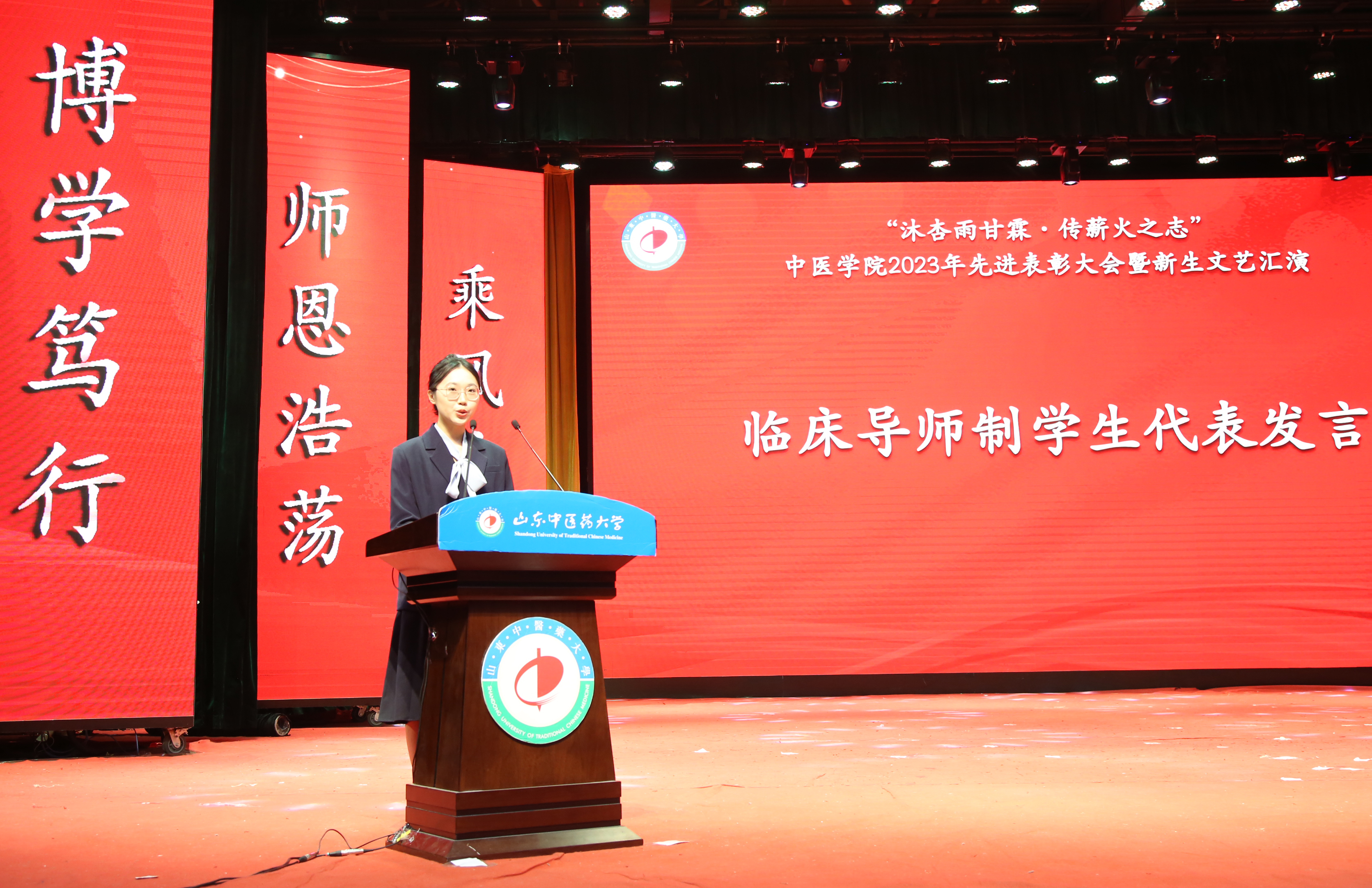 大会表彰环节由公司党委副书记芦琳主持。首先导师代表田虎、员工代表孙百合分别上台交流发言,畅谈对临床导师制的认识与体会。随后为临床导师颁发聘书、为联合培养单位授牌。大会还表彰了公司“十大自强之星”“十大学业之星”“十大科研之星”“十佳先进班集体”“优秀员工党支部”等先进典型代表。