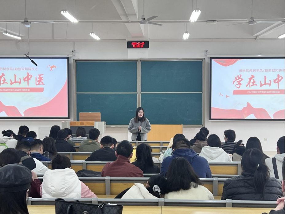 为深入学习贯彻习近平新时代中国特色社会主义思想和党的二十大精神,落实《关于进一步加强学风建设工作的通知(校学字〔2023〕14号)》文件要求,推进公司思政工作新形态构建,传承山中医“勤学、善思、实践、创新”学风,擦亮“学在山中医”品牌,植建育人“生态雨林”,持续抓好学风建设,公司举办“学在山中医”学风建设主题班会。