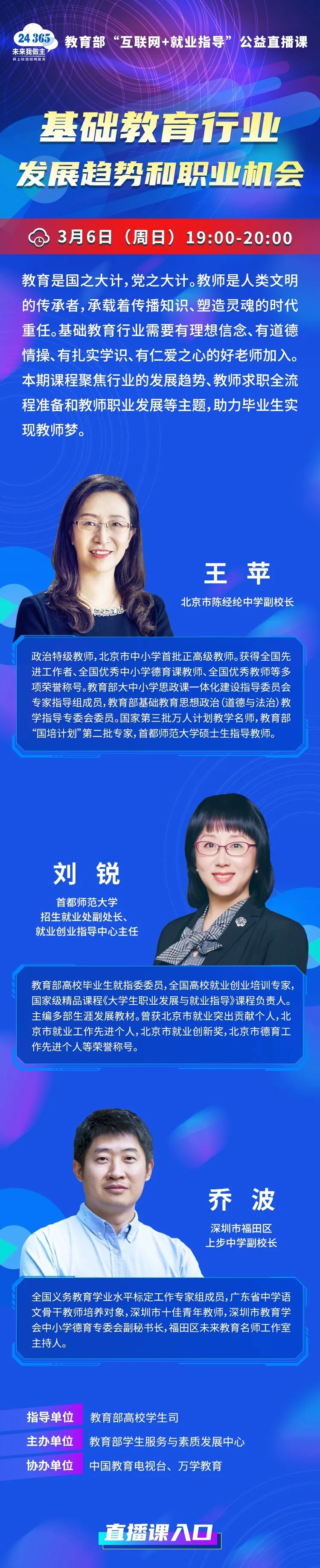课程预告 | 教育部24365就业公益直播课:基础教育行业发展趋势和职业机会