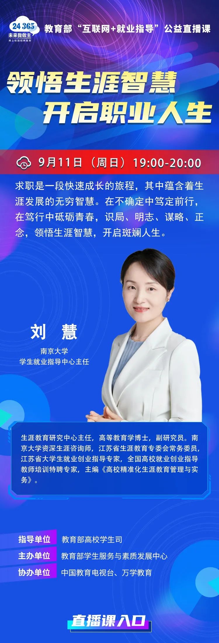 课程预告 | 教育部24365就业公益直播课:领悟生涯智慧,开启职业人生