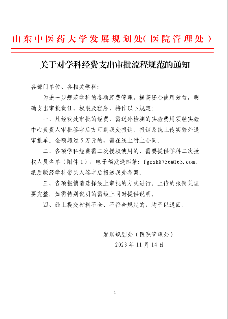 关于对学科经费支出审批流程规范的通知