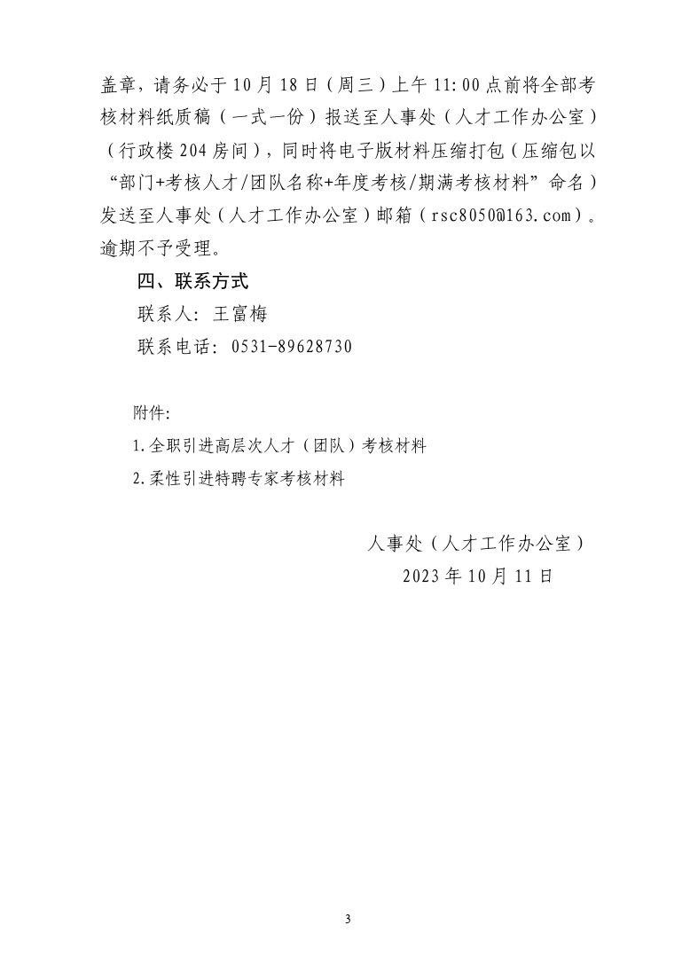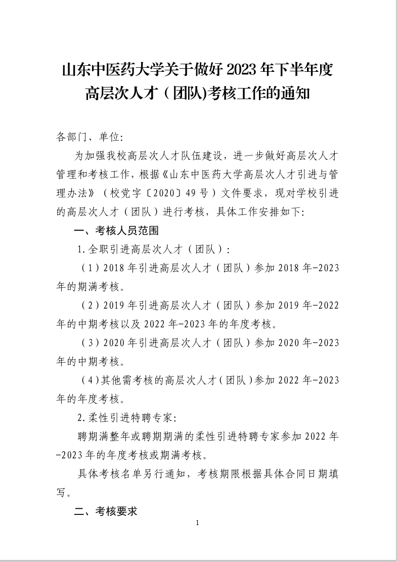 公司关于做好2023年下半年度高层次人才(团队)考核工作的通知