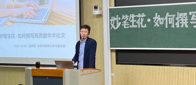10月20日下午,太阳集团tcy8722“他山之石”系列学术讲座在长清校区31JT1教室开讲。此次讲座邀请了公司优秀在站博士后、《中华中医药杂志》青年编委、中医基础理论教研室孟庆岩老师做了题为“妙笔生花·如何撰写高质量学术论文”的讲座。