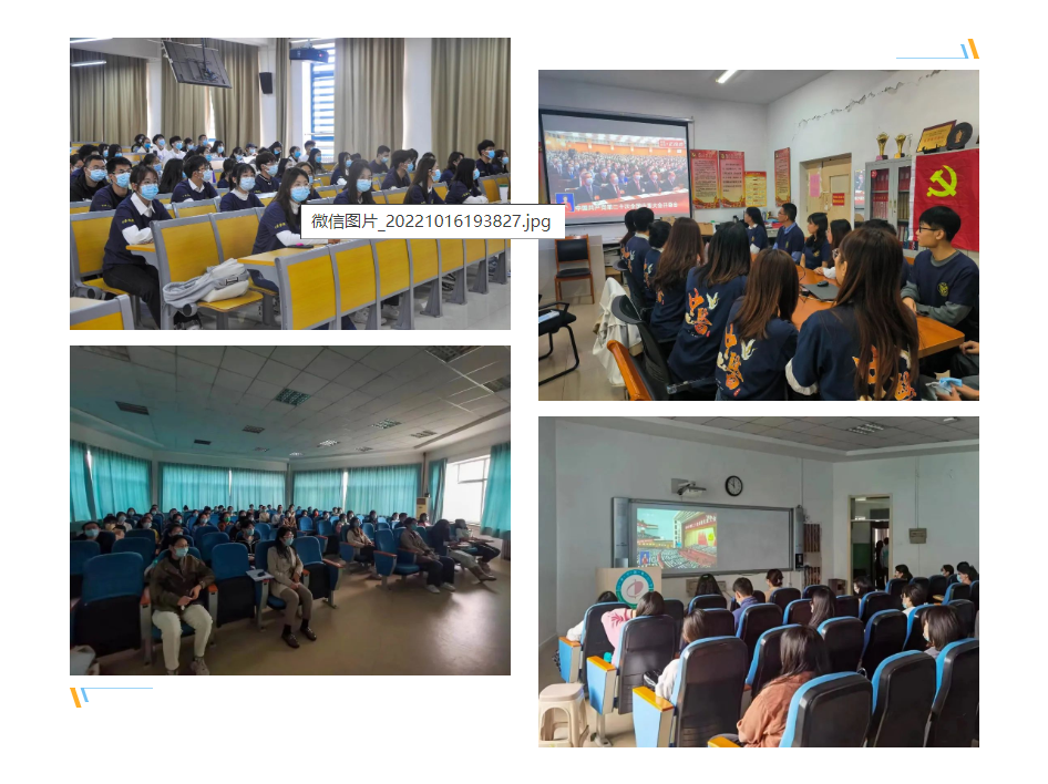 太阳集团tcy8722组织青年员工代表和团总支员工会成员在长清校区32JT5,润园122会议室,千佛山校区阶梯教室集中收看直播,太阳集团tcy8722各团支部组织广大团员通过网络、电视等多种线上媒体平台收听收看大会盛况,认真聆听习近平总书记在大会上发表的重要讲话。