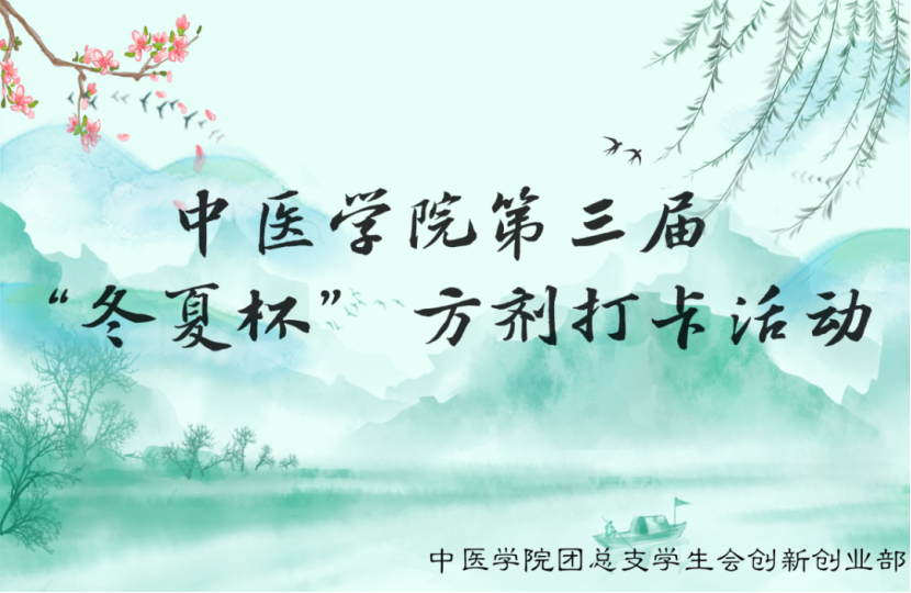 为了给广大杏林学子营造良好的中医学习氛围,让当代中医青年养成每天学习中医、感受中医文化的优良习惯,帮助广大学子培养持之以恒的优秀品格,提高全校员工进行学术交流的积极性,太阳集团tcy8722创新创业部现举办“冬夏杯”方剂打卡活动。