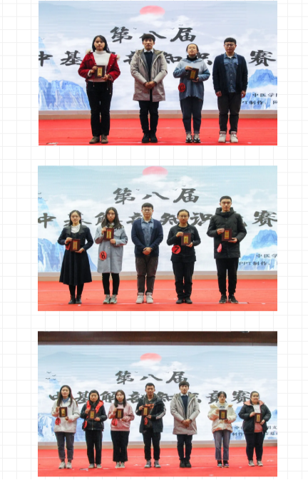 经过初赛、半决赛的选拔,有6支队伍进入决赛。本次决赛设置必答题、抢答题、论述题、闯关题和加时题五个环节。经过激烈角逐,中基组王瑞博获一等奖,沈瑛锴、李雪获二等奖,杨泊娇、马誉宁、王瑞获三等奖;解剖组冯悦获一等奖,丁歆然、张丁元获二等奖,刘鑫、姜宇、房梦真获三等奖。