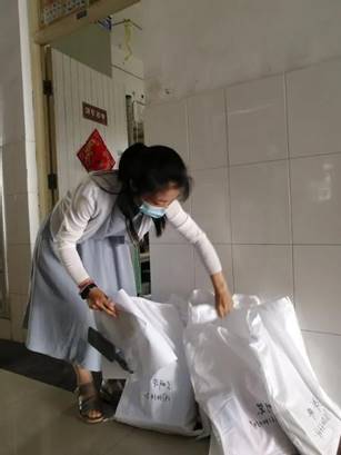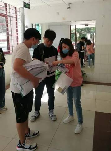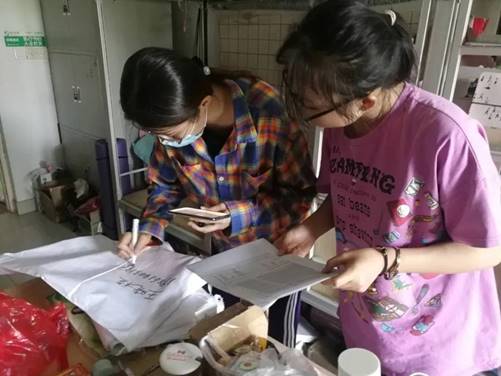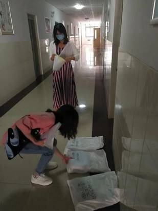 初夏炽热的大太阳一如志愿者们高昂的热情。遇到腐烂的瓜果,大家便顺手拎出宿舍。逐个视频、分拣课本、打包标记、运送到指定地点,大家不停地跑上跑下,一个个汗流浃背,甚至顾不上停下喝一口水,但想到自己的小伙伴们很快就能收到惦念许久的书本,依然感觉充满干劲。