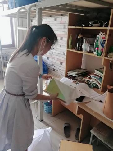由公司辅导员带领各自的员工志愿者,两个人一组,一人负责视频连线同学,一人负责依据指示查找书本。同一宿舍的课本全部找齐后,依次进行打包、标记,对宿舍进行简单的整理后进入下一个宿舍。所有同学的书本都打包完成后,大家再一起运到指定地点,依据同学们前期云端下单的数据,打印粘贴快递单,进行精准邮寄。