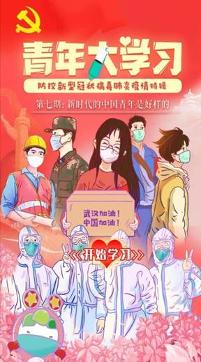习近平总书记寄语中国青年“青春由磨砺而出彩,人生因奋斗而升华”,并对疫情中积极响应党的号召,踊跃投身疫情防控人民战争、总体战、阻击战,不畏艰险、冲锋在前、真情奉献的当代中国青年,提出了高度赞誉。