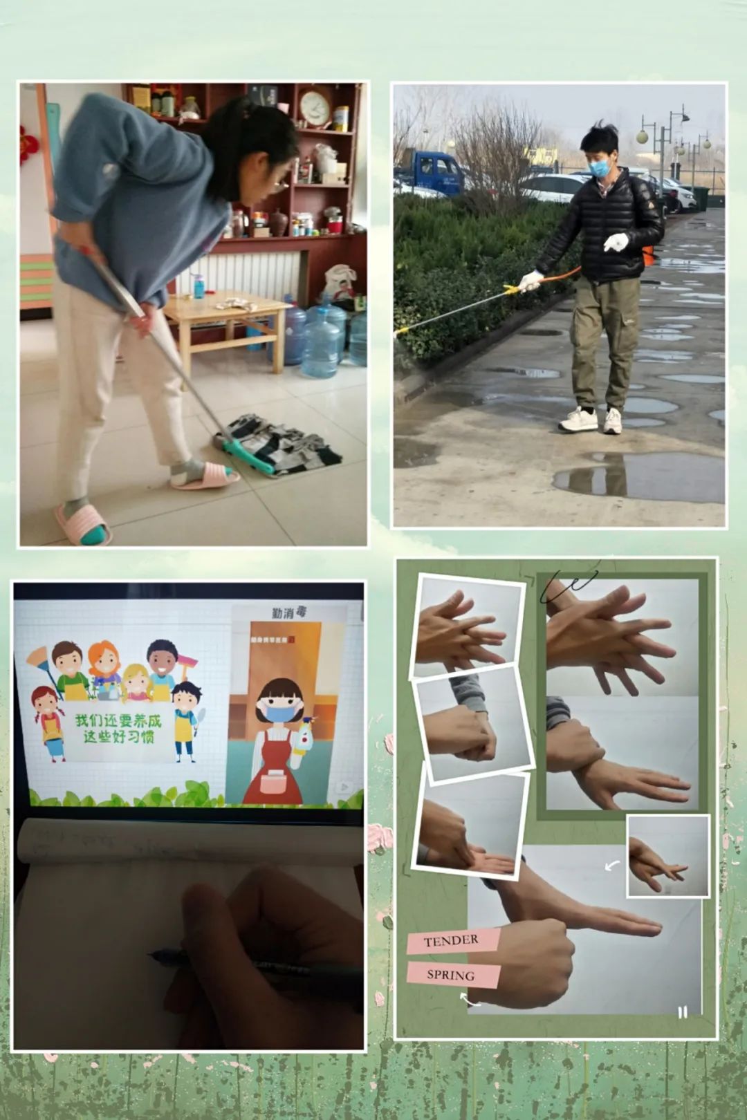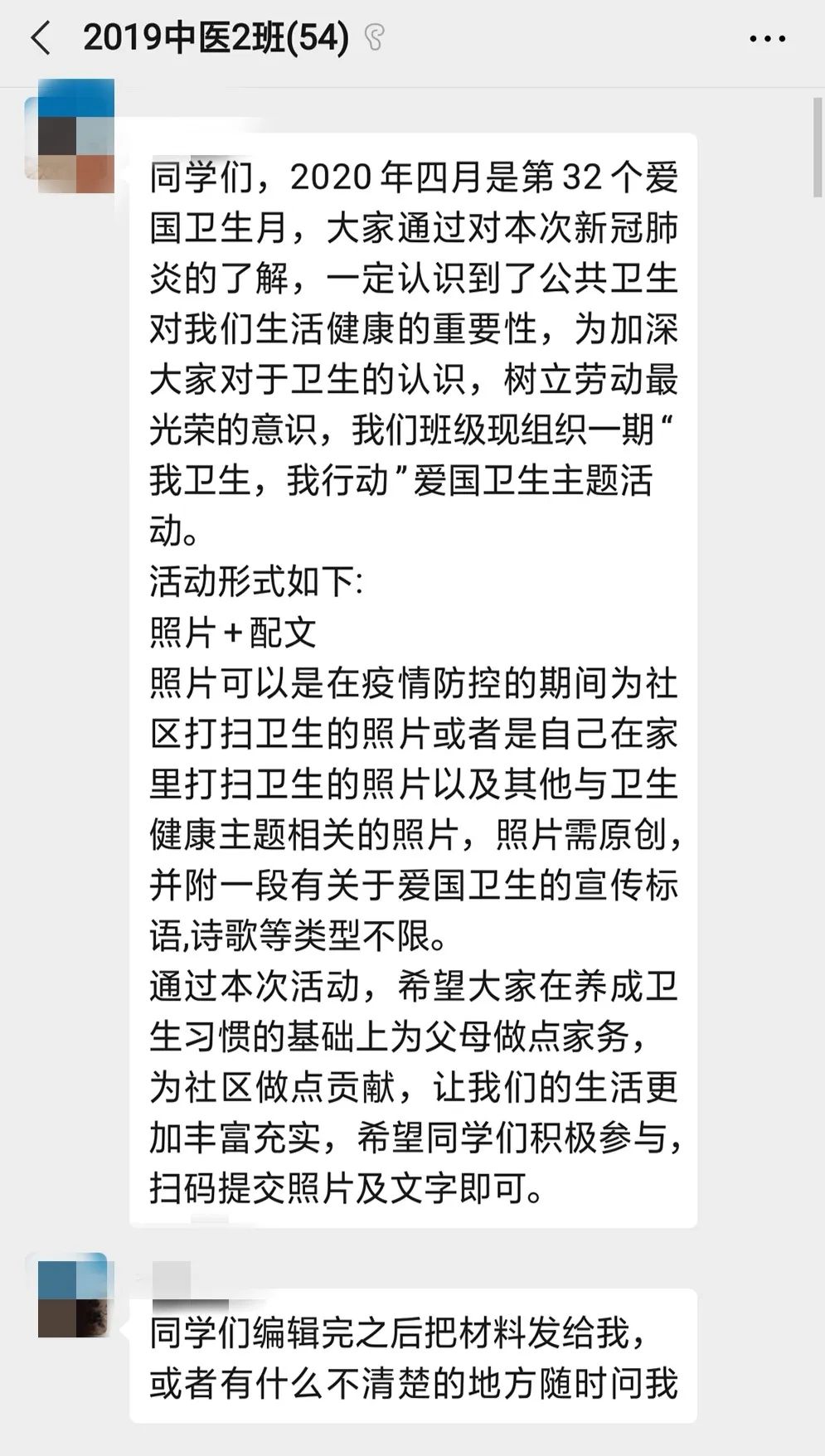 2020年4月是我国第32个爱国卫生月,本次爱国卫生月主题为“防疫有我,爱卫同行”。正在进行的这场抗击新冠肺炎疫情的阻击战让我们深刻认识到了个人、社会卫生对我们生命健康的重要性,更增强了我们在生活中讲卫生、在日常中做卫生、在社区中宣卫生的意识。爱国卫生月活动启动以来,班委便通过各种方式进行策划与组织,在导员的指导、全班同学的积极参与下,我们成功举办了“我卫生,我行动”爱国卫生主题活动。