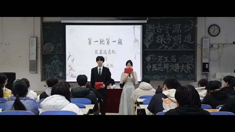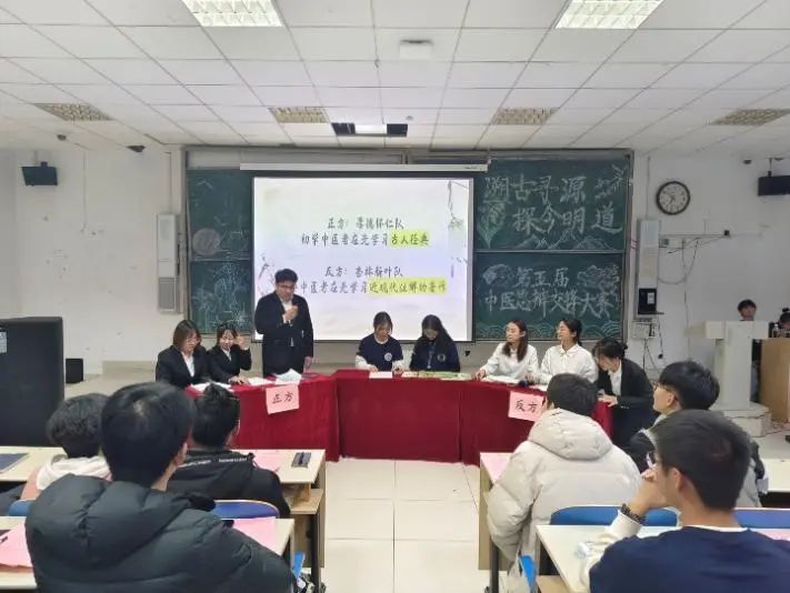 在比赛中,选手唇枪舌剑,各显其长,尤其在自由辩论环节,面对对方选手的提问,能够依据自身的知识基础,加以运用实例,迅速针对对方漏洞进行反击,不仅带动了赛场热烈的气氛,更体现了他们思维缜密、博学多识的中医学子风采。