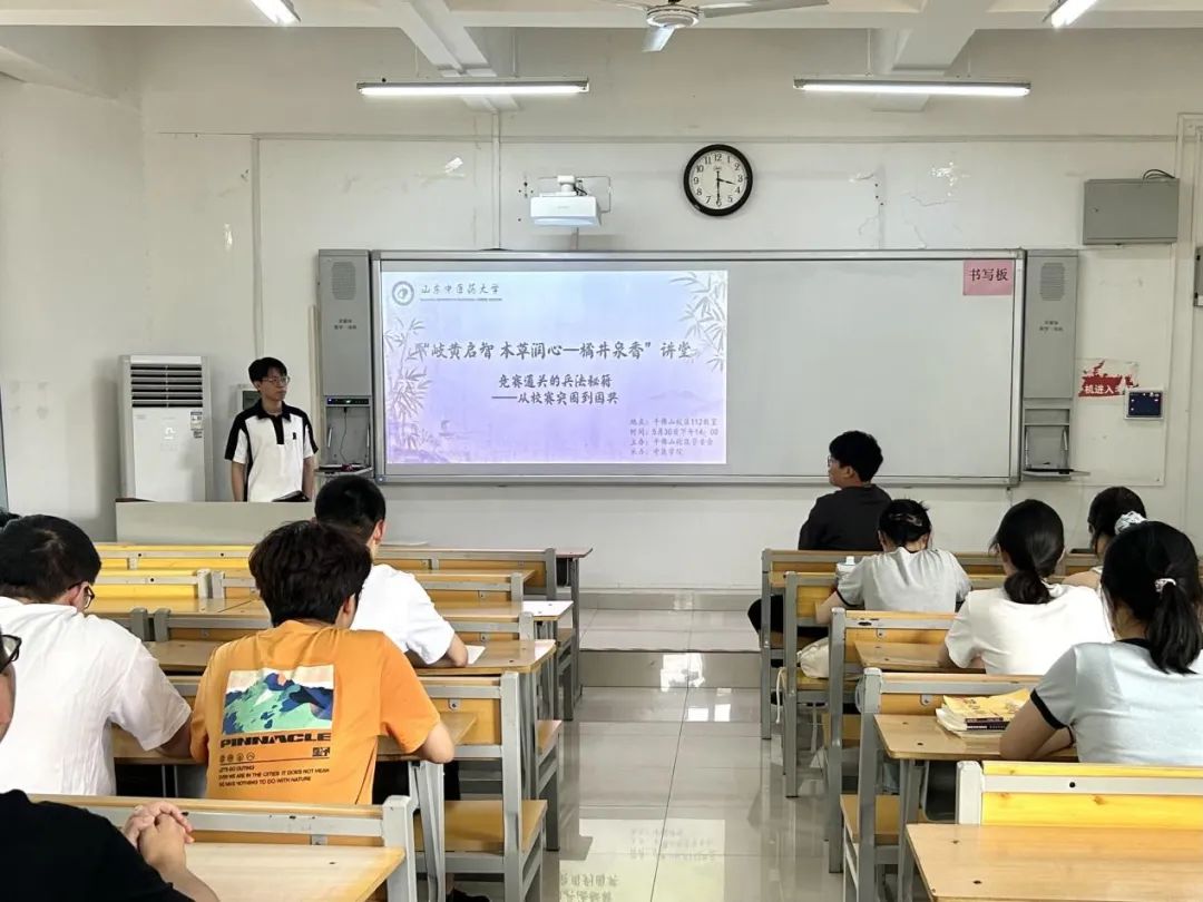 5月30日下午,由千佛山校区管委会主办、太阳集团tcy8722承办的“岐黄启智,本草润心——橘井泉香”讲堂第三讲在千佛山校区教学楼112举行。本次讲堂邀请2020级中西医临床医学专业孟佳棋担任主讲人。