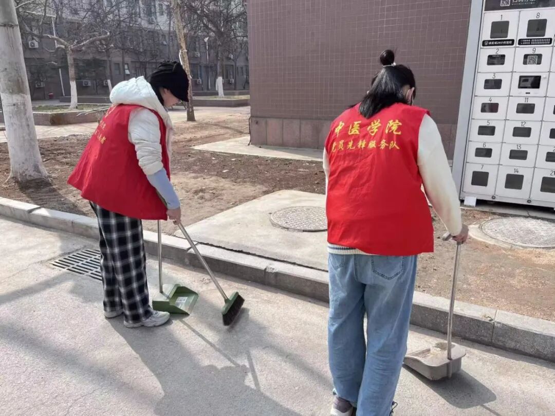 与此同时,在宿舍生活区,志愿者们对楼前楼后的公共区域进行了集中整治。大家分工明确,清扫路面垃圾、将随意停放的自行车搬运至指定区域并摆放整齐、捡拾草地上的塑料袋、饮料瓶等废弃物,用实际行动诠释雷锋精神的时代内涵,为同学们返校后营造干净、舒心的生活环境。