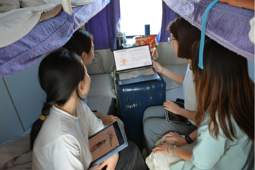 志合者,不以山海为远。50多个小时的火车硬卧,一路上穿过数不清的桥隧,电子设备也几乎没有信号,只能在狭小的空间里伸展四肢以放松身体,但这一切都没有消磨我们对支教工作的热情和向往,反而在看到壮阔的戈壁荒漠,穿过绵延的天山时更加坚定了奔赴远方、播撒希望、传承岐黄的信念。一路上各组队伍精心备课,讨论,制定切实可行的教学计划,期待着为喀什的小朋友们带去独特且高质量的课程体验。
