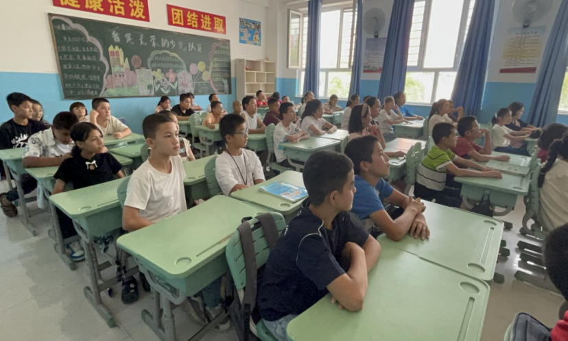 下午由于授课安排,我回到了队伍所负责的班级——五年级一班和二班。走进新的班级,面对崭新而又纯粹的面孔,他们的热情再一次将我打动:“老师你叫什么名字呀?”“你也是从山东来的吗?”“老师你也是老员工吗?”“今天上午怎么没有看见你啊老师?”我以为孩子们大多会沉默不善于表达,经过一下午的相处,发现他们并非如此。小朋友们上课抢着回答问题,下课也会围着我们问各种各样有趣却又意想不到、抑或让人苦笑不得的问题。“相逢的意义在于照亮彼此。”我想我将会永远记得孩子们的这份纯真,他们身上总有一种特质,让我觉得他们远比我想象的要更加勇敢和坚强。